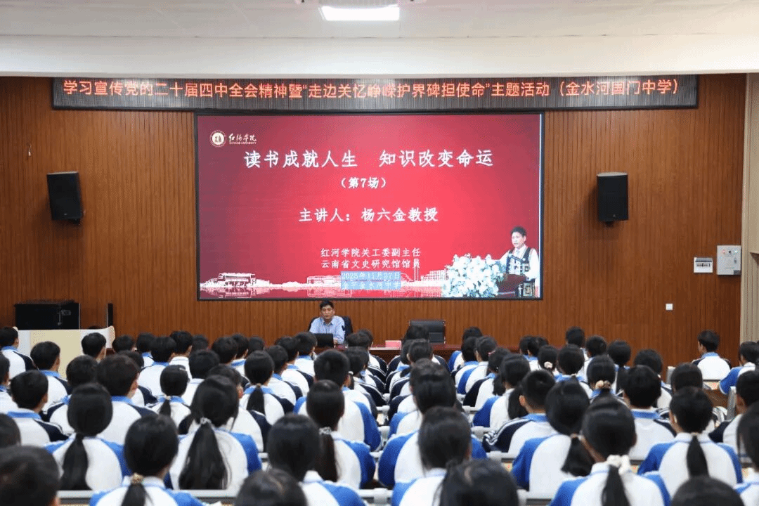 “从放牛娃到能赴日本、美国宣讲中国民族文化的学者,我每一步成长,都离不开党和国家对边疆教育的托举。”在金水河国门中学报告厅,红河学院教授杨六金的宣讲,让在场200余名大中小学生及教师深受触动。