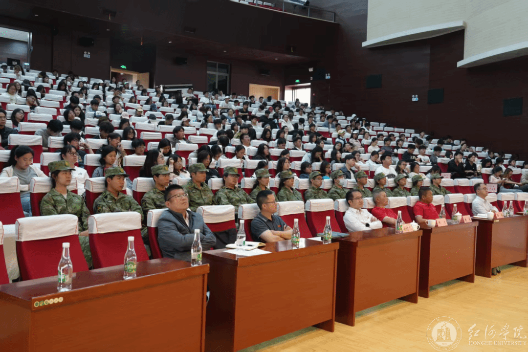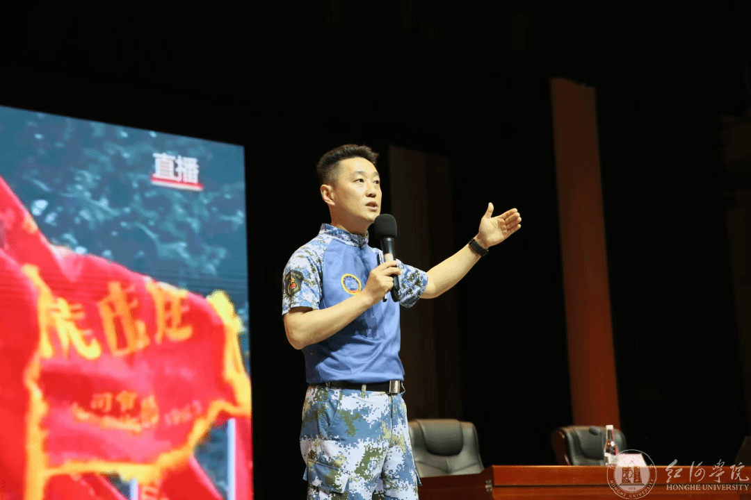 讲座现场,张楠带领全体同学齐声朗读红河学院校训“博远有鸣,开阔弘毅”,勉励大家勇担时代责任,并以“为天地立心,为生民立命;为往圣继绝学,为万世开太平”寄语红院学子。