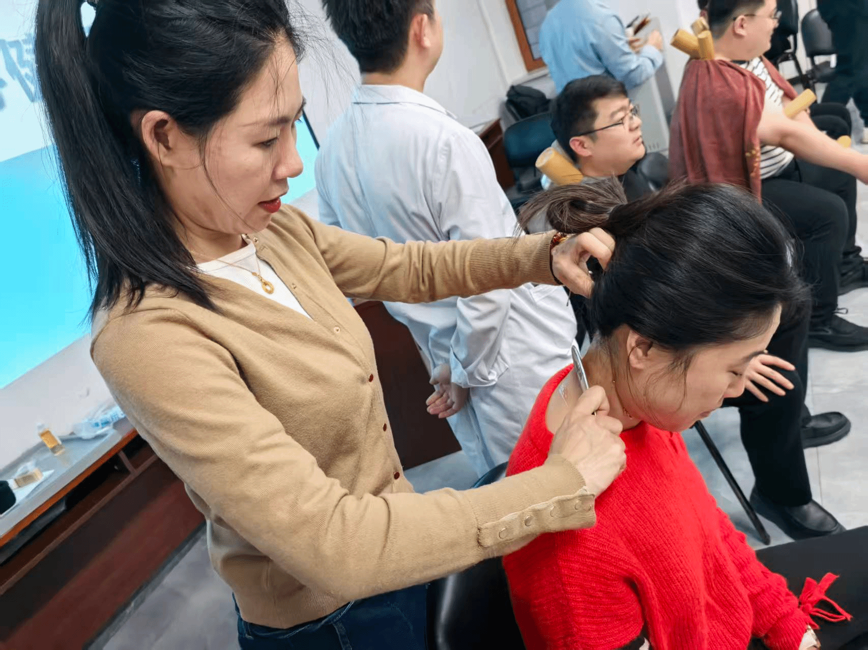 李传英以“‘中医赋能’考期积极心态”为主题,进行实操训练