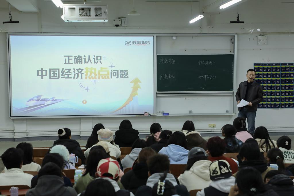 学校党委书记曹执令以“正确认识中国经济热点问题”为题,从当前宏观经济形势入手,运用丰富案例与详实数据,科学阐述了我国经济发展的韧性与潜力。他勉励学生要将专业知识与国家需求紧密结合,将个人成长融入国家发展大局。