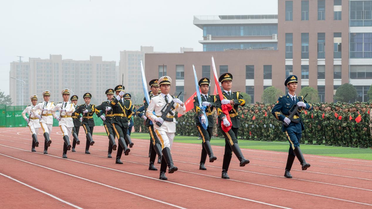 大会在庄严的国歌声中拉开帷幕。五星红旗冉冉升起,全体师生肃立致敬。校旗紧随其后,现场气氛庄重而热烈。