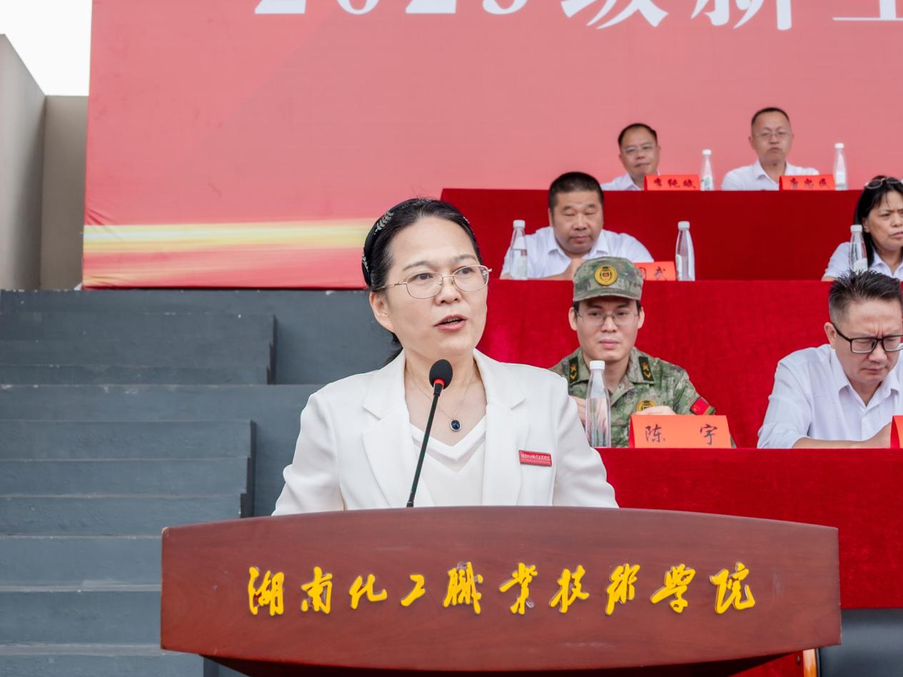 党委副书记、校长隆平在致辞中向新生表示热烈欢迎,并围绕“励才以新、修德以行”提出三点期望:转变认知,厚积成才动能;立身修德,规范言行举止;定位高远,锚定人生航向。她强调,同学们要珍惜大学时光,奋发向上、务实创新,通过努力在技术技能成才的赛道上绽放光芒。