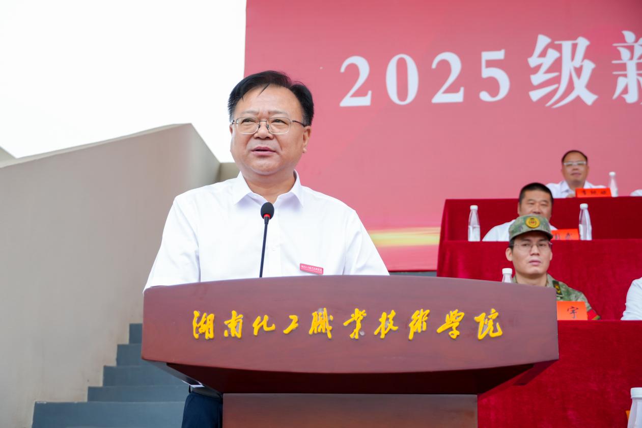 最后,党委书记陈超作总结讲话。他回顾了学校近70年与国家发展同频共振的办学历程,指出学校作为赓续湖南楚怡职教血脉的老牌院校,始终以“为党育人、为国育才”为己任。同时,他对新生提出三点希望:一是立心铸魂,做强国兴邦的建设者;二是立身强能,做技能成才的践行者;三是立行致远,做与校同行的追光者。