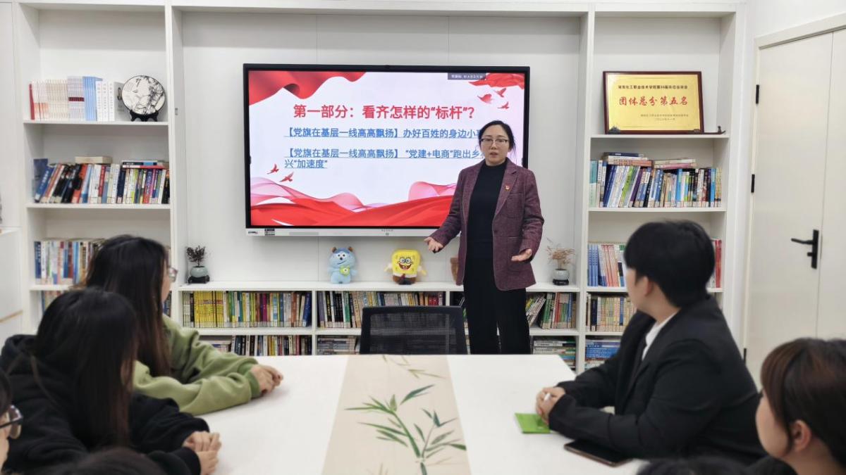 为充分发挥基层党组织的思想引领与育人功能,引导入党积极分子筑牢信仰之基、补足精神之钙,11月11日下午,商务贸易学院党总支教工党支部在唯真苑“一站式”学生社区成功举办“映‘商’红育人坊”系列主题活动。本期活动以“看齐榜样标杆 擦亮青春底色——竖起‘一站式社区’先锋旗帜”为主题,由支部党员憨慧老师担任主讲,2025年第二批入党积极分子参与学习。
