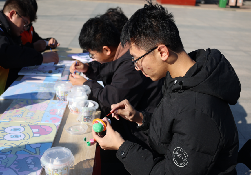 由校团委主办、机电工程学院团总支承办,媒美机电融媒体育人工作室、J小匠志愿者服务队和机电书画协会联合协办的“数字解构,油彩绘心”油画DIY活动在知行广场火热开展,集知识问答与创意绘画于一体,学生们通过抽签回答防火、防诈骗题目,强化了安全知识,随后沉浸在DIY创作中,现场艺术氛围浓厚,欢声笑语不断;中原美术学院团总支在汇文湖畔开展了非遗版画体验活动,志愿者们耐心地为大家讲解版画的基础知识,从选材、雕刻到印刷,每一步都细心的讲解。学生们纷纷动手拿起工具,在胶板上开始尝试精心雕刻制作,经过调墨、滚墨和拓印等环节,精美的图案跃然于纸上。