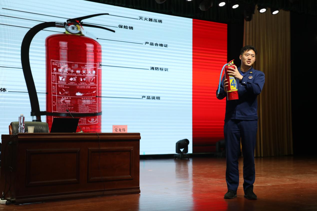 党龙伟详细讲解了在校师生对于消防安全工作的责任和义务,剖析了近期典型校园火灾案例,围绕防灭火常识、逃生自救技能等多个课题进行教授,使师生能够更加直观、深刻地了解和掌握防灭火基础知识。