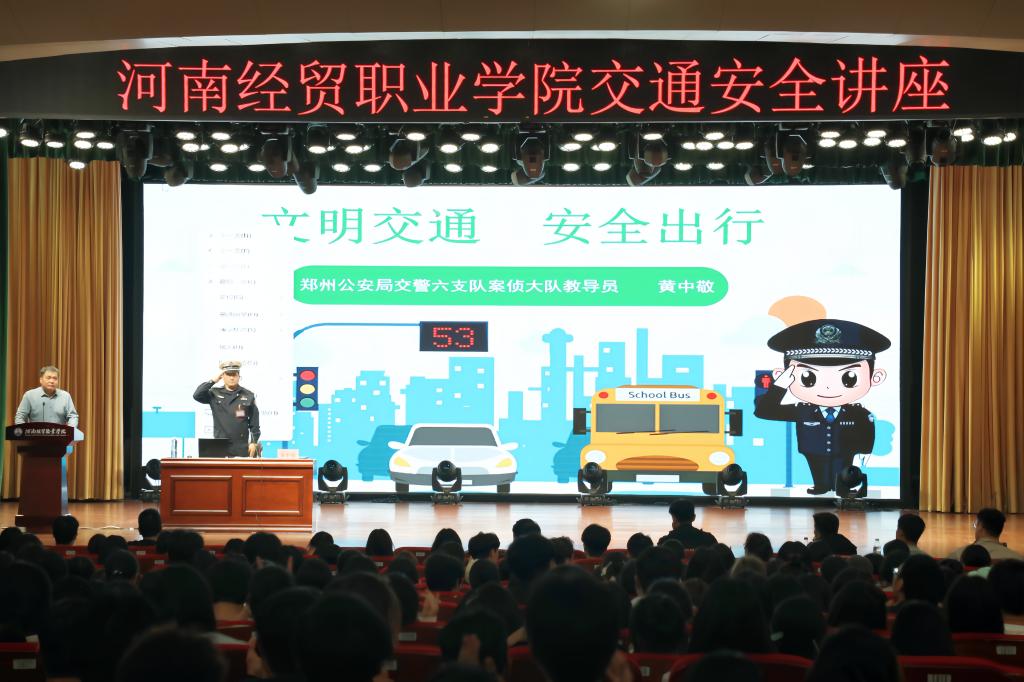 为增强师生的安全防范意识,4月11日,我校在1406报告厅举办安全教育专题讲座,500余名师生代表参与。本次讲座邀请郑州市公安局交警六支队案侦大队教导员黄中敬、郑东新区消防救援大队参谋党龙伟担任主讲嘉宾。