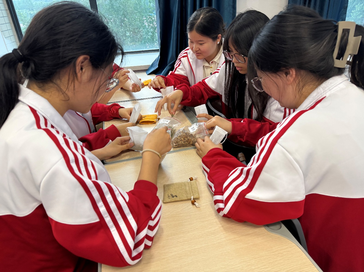 随后,同学们共同开启香囊制作实践活动。学生党支部提前精心筹备了色彩缤纷的绸缎布料、天然驱蚊香料、流苏配饰及针线工具。在志愿者的分步示范下,同学们认真学习折叠、缝合、填充等技巧。大家专注于手中的香囊,将对传统文化的热爱一针一线融入其中。不一会儿,形态各异的香囊在同学们手中诞生,淡雅的药香在教室中飘散,承载着端午安康的美好寓意。在成果展示环节,同学们将制作完成的香囊进行集中陈列,开展“最美香囊”评选与分享活动。大家围绕香囊设计理念与文化感悟畅所欲言,并通过互换香囊的形式传递祝福。