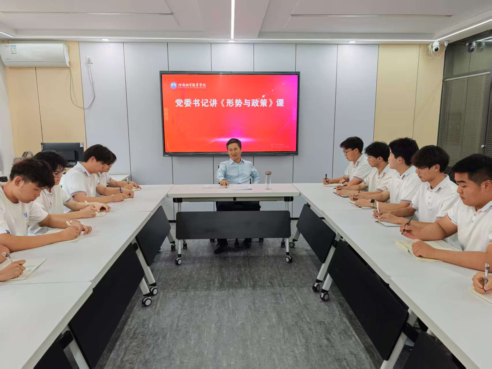 6月12日下午,校党委书记王新庆到乐群书院3号楼二层自习室为学生们讲授了一堂主题鲜明、内涵深刻的《形势与政策》课,围绕国际形势、国家战略、河南定位及青年成长路径,深入阐释“抬头看路”与“低头拉车”的辩证关系,引导学生坚定方向、勇于实践。