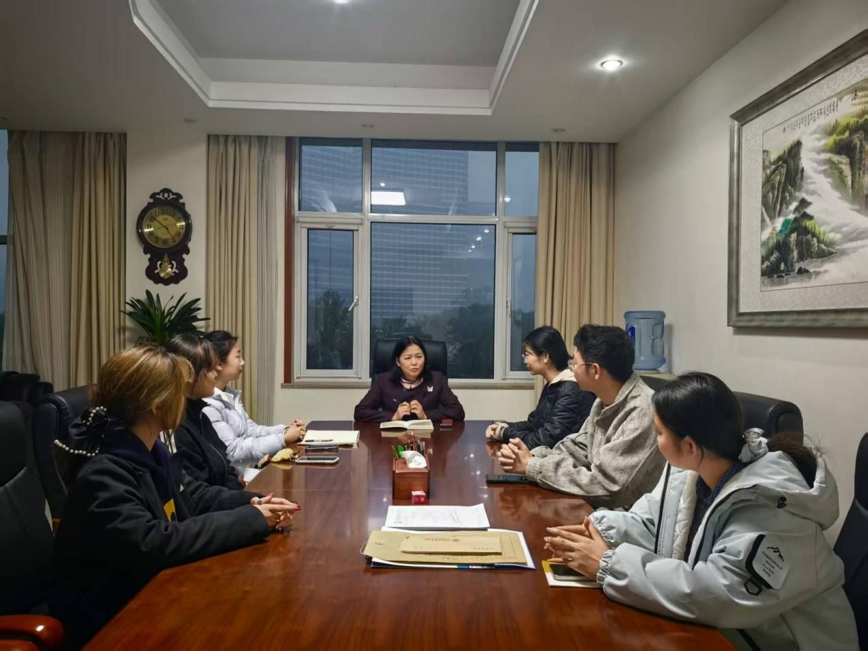 座谈会伊始,成光琳细致询问同学们的在校生活点滴:“同学们都来自哪里?在学校生活适应吗?”“学期过半了,大家在学习上有没有遇到挑战,需要学校提供哪些支持?”“宿舍生活便利吗?有什么需要改进的地方?”言语间充满了对学生的深切关怀与挂念。她认真倾听每一位同学的发言,仔细记录下大家的感受、困惑和建议。
