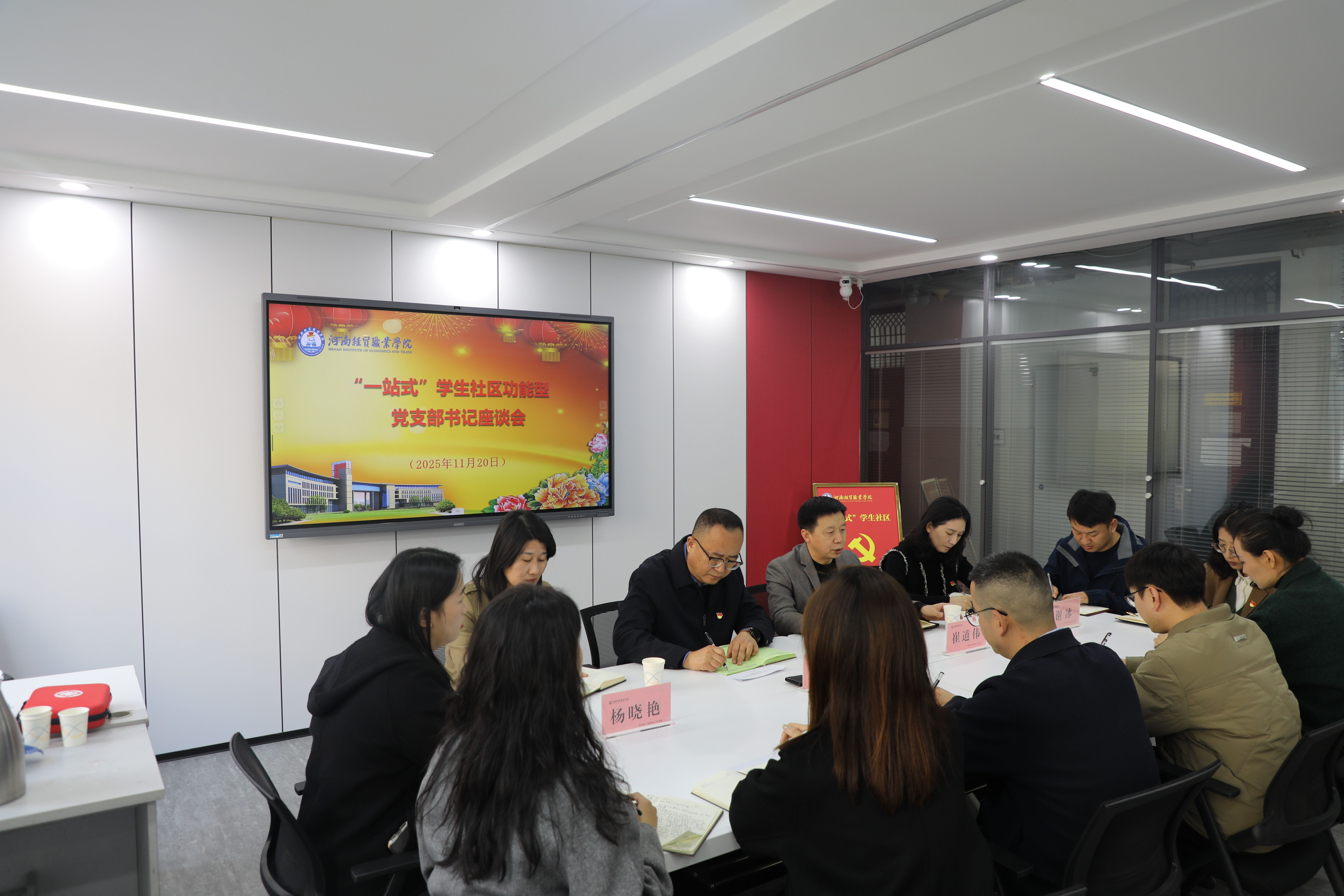 揭牌仪式后,袁泓与各功能型党支部书记围绕“一站式”学生社区党建工作开展座谈交流。座谈会上,组织部负责同志宣读学校党委《关于成立“一站式学生社区”功能型党支部的通知》,乐群书院党支部、功能型党支部书记围绕党员工作站的建设思路、核心目标与推进计划进行了汇报交流。