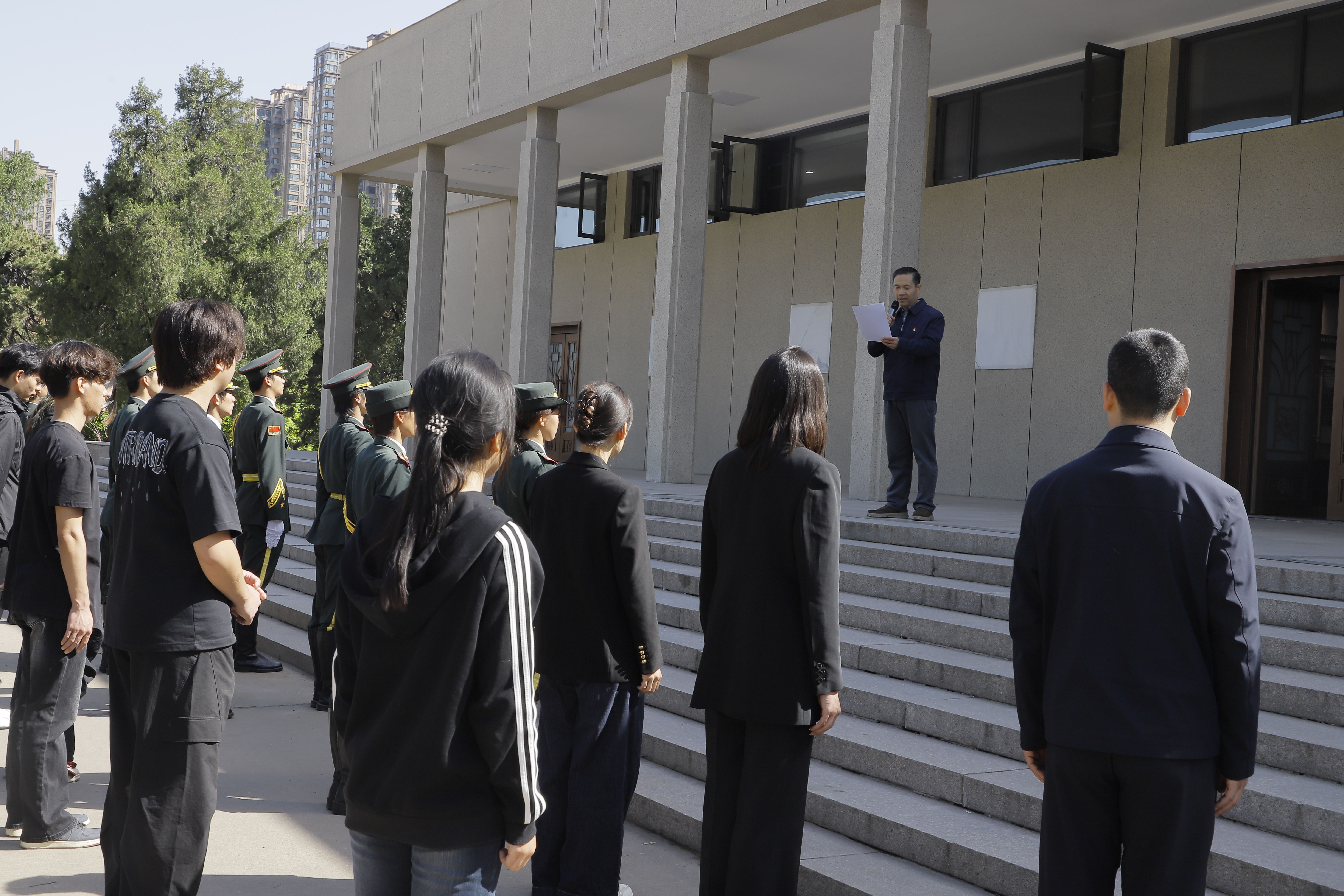 上午8时,师生代表在烈士纪念碑前整齐列队。国旗连迈着庄严有力的步伐护送花圈至纪念碑前,全体人员肃立默哀,向为民族独立、人民解放和国家富强英勇献身的革命先烈致以最深切的悼念。团委书记王冲在讲话中指出,正是革命先烈的热血与牺牲,才铸就了今日山河无恙、家国安宁,青年学生要铭记历史、珍惜当下,以青春之我守护红色江山,以奋斗之我争做时代新人。随后,学生代表重温入团誓词,铿锵誓言在陵园上空久久回荡,表达了传承信仰、报效祖国的坚定决心。