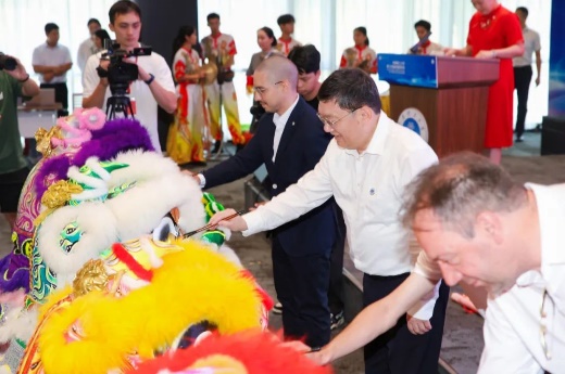 开幕式上,国际师生欣赏了充满浓浓中国味的醒狮表演,在醒狮互动中体会中国文化的博大精深。开幕式现场还为国际学生佩戴华南理工大学校徽,仪式感满满。