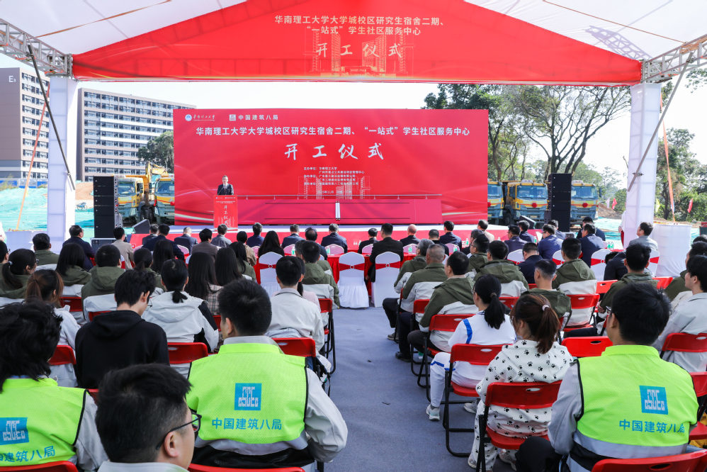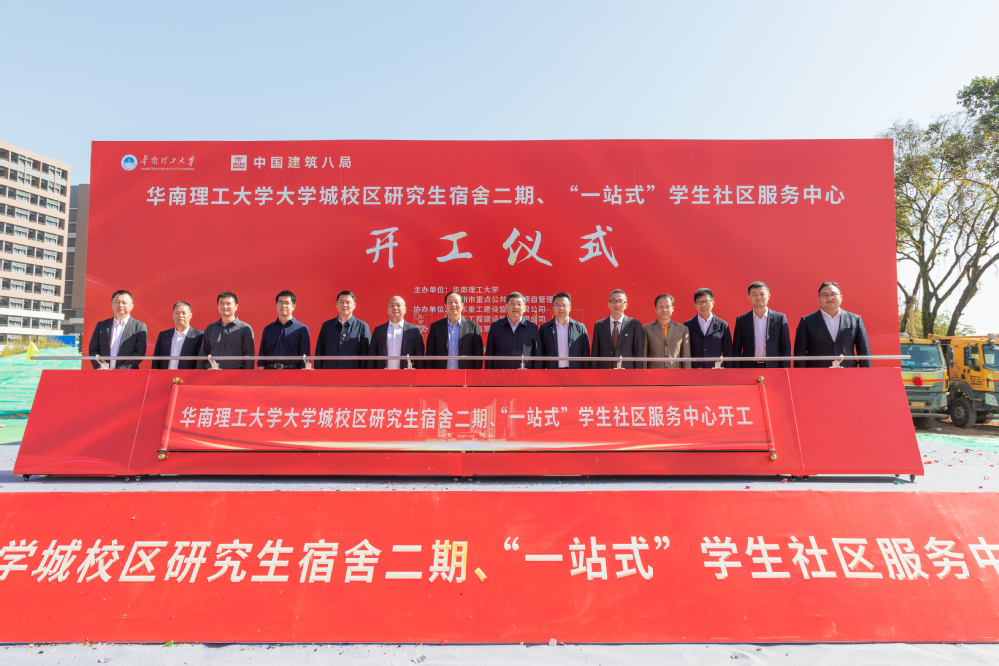 11月26日,华南理工大学举行大学城校区研究生宿舍(二期)和“一站式”学生社区服务中心项目开工仪式。学校党委书记章熙春,校长唐洪武,番禺区副区长严明昆,广州市重点公共建设项目管理中心主任邓新勇,学校党委副书记、纪委书记徐国正出席仪式。副校长吴波主持仪式。