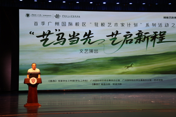 3月30日,由广州国际校区学生事务办公室和艺术学院联合打造的“驻校艺术家计划”在广州国际校区E5双创中心剧场正式启幕。学校副校长李正出席活动并致辞。美国工程院院士程正迪、广东省朗诵协会执行会长卢吉雄、番禺区文化馆馆长王霞出席活动。