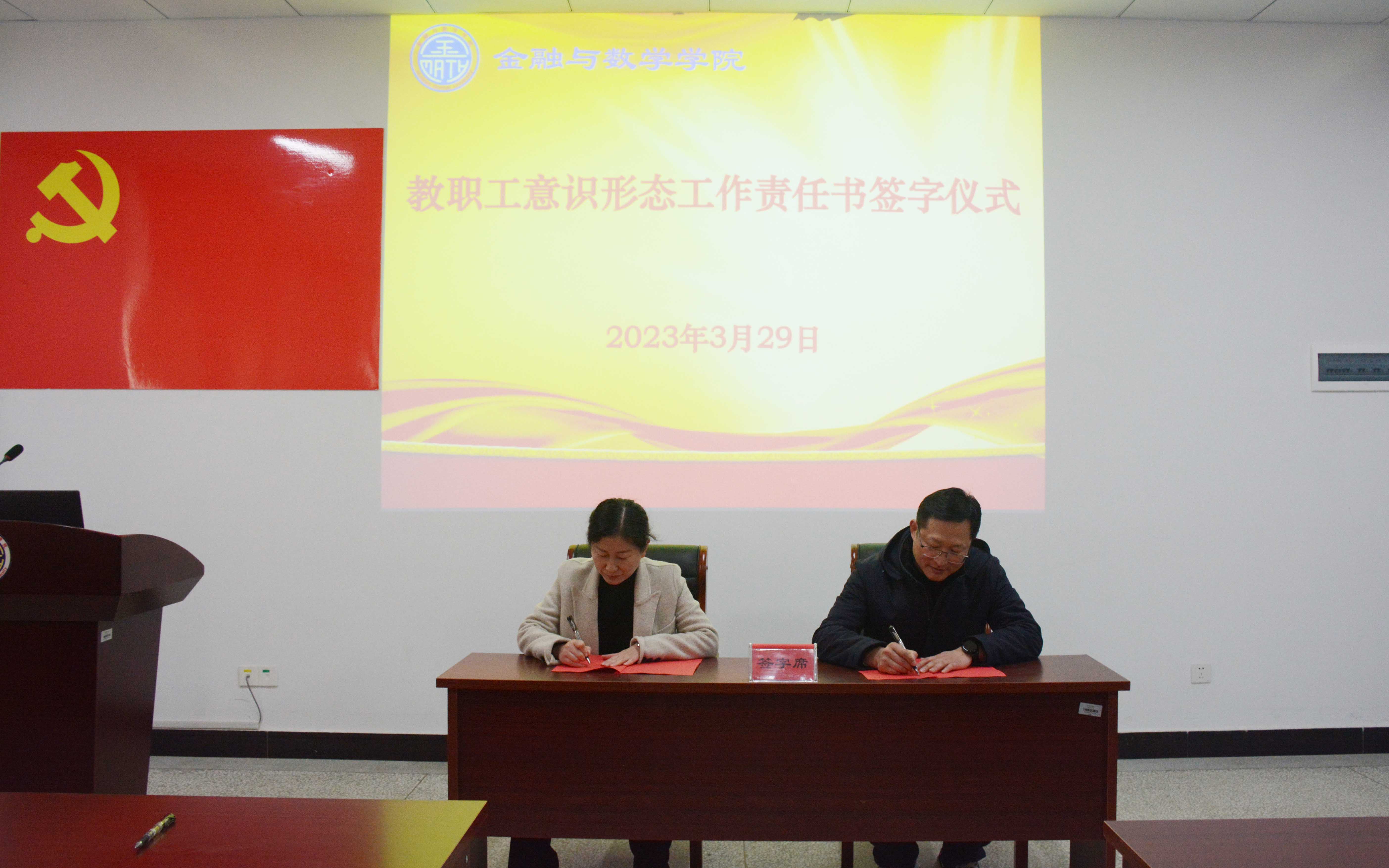 3月29日下午,学院召开全体教职工会,学院党政领导与全体教职工举行了意识形态责任书、廉洁自律承诺书签字仪式,要求全体教职工承诺践诺,守牢意识形态阵地,筑牢廉洁自律底线。
