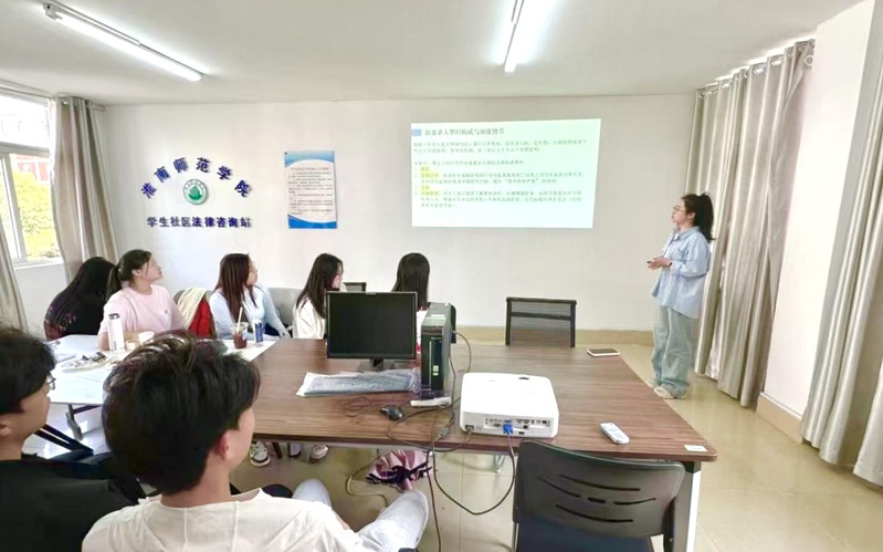 朱逸涵通过典型案例讲解、法理分析等形式从宿舍安全的法律边界、校园不文明行为的违法性认定、科研创新的法律风险防控三个方面进行法理分析。她以湘潭大学研究生投毒案为例,详细说明了故意杀人罪的构成要件以及该案死刑判决的法理依据和情节;面对与会同学提出的“外卖被偷怎么办?”等高频问题,从行政法及刑法维度分析了校园内小偷小摸等校园不文明行为在不同情形下可能涉及的法律责任;在科研创新领域的法律风险防控部分,朱逸涵通过央视新闻报道的“AI辅助写作越发普遍 不当使用亦增多”视频引入,帮助同学们树立正确的学术观念,严守学术诚信底线。在互动环节,与会同学就校园生活中可能遇到的法律问题展开热烈交流。2022级法学专业李莹莹表示:“平安校园建设离不开法治保障。我们要进一步加强专业学习,提升法治素养,尽己所能开展朋辈普法,引导同学们树立法治观念,增强自我保护能力。”