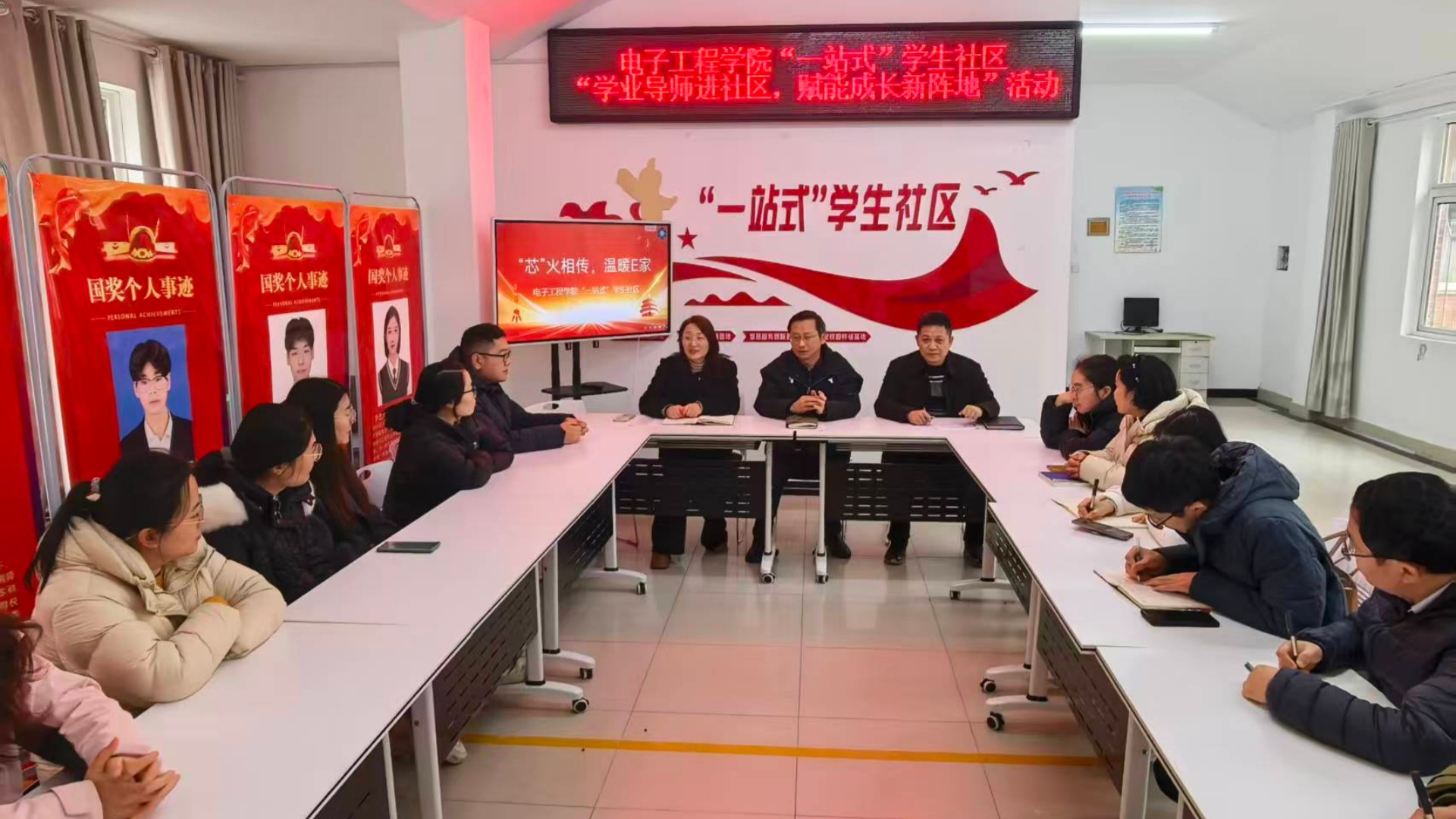 为扎实推进“一站式”学生社区建设,精准破解学生学业难题,营造互助共进的育人氛围。12月24日下午,电子工程学院组织学业班主任走进“一站式”学生社区,开展学业帮扶交流活动。学校党委学工部副部长万军,学院党委书记杨智军,党委副书记李媛以及学业班主任参加了活动,活动由李媛主持。