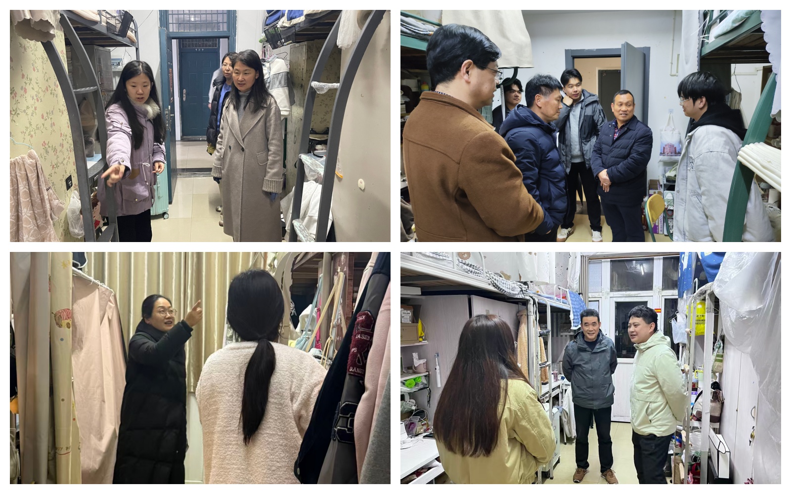走访组对发现的问题进行了现场分析研判和部署安排。要求实事求是,对发现的问题要严肃认真进行整改。各相关职能部门和二级学院要进一步提高思想认识,认真自查自纠,建立问题台账,做到底数清、情况明、整改实。要坚持问题导向,开展专项治理,狠抓整改落实,做到立行立改,切实消除宿舍安全隐患。要树立正确政绩观,加强横向沟通与纵向协作,将严格的宿舍管理与深入的学生思想政治教育、心理健康教育、学业发展指导有机融合,要形成一站式学生社区信息共享、资源互补、齐抓共管的工作格局,将“安全底线”与“成长高线”结合起来,把“严管”的要求与“厚爱”的关怀统一起来,落实到宿舍管理服务的全过程各环节,形成育人合力,让每间宿舍都能成为学生感受到安全温暖的“第二课堂”。