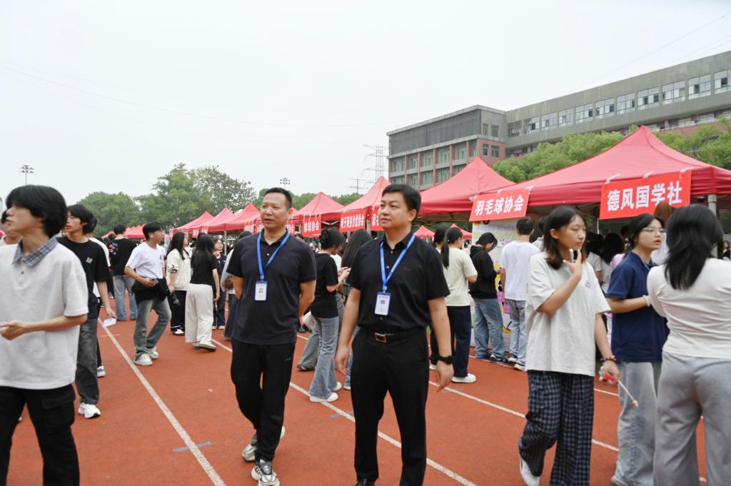 9月30日上午,我校2025年大学生成长“金钥匙”素质拓展工程社团招新活动在田径场正式启动。65个特色社团集中亮相、同步纳新,现场气氛热烈,成为秋日校园中一道亮丽的青春风景。党委委员、副校长肖勇亲临现场,了解活动开展情况,与社团成员亲切交流,并就社团活动如何更好贴近学生成长需求、推动“活力社团”品牌化建设提出指导建议。