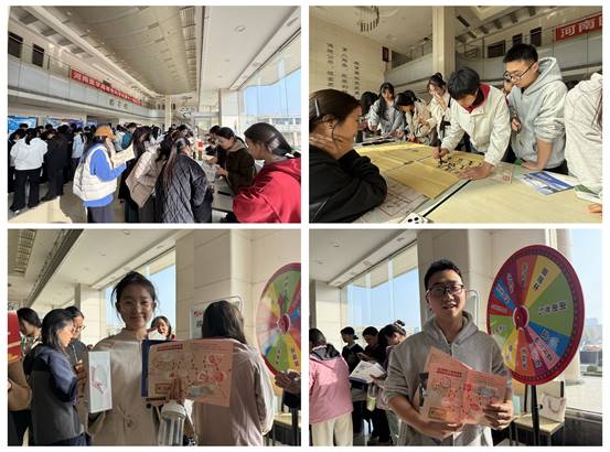 活动采用“集章赢好礼”的形式,将趣味互动与资源导航深度融合。现场设立8个探索站点,全面覆盖中外文数据库使用、电子图书期刊检索、多媒体学习资源等内容。参与活动的学生手持特制的“探索地图”,在图书馆馆员和学生志愿者的引导下,依次前往各个数字资源展区聆听专业讲解、观看操作演示,并通过完成检索或体验任务获得特色印章。这种任务驱动的沉浸式体验,让学生在实践操作中快速掌握数字资源的使用技能。同学们穿梭于各个站点之间,或认真聆听,或积极提问,或相互讨论,活动现场气氛热烈。