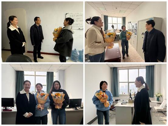 活动结束后,李鹏涛一行带着学校的关怀与祝福,深入各院系、职能部门,为坚守在工作岗位上的女教职工们逐一送去了精心准备的鲜花和节日祝福。并与女教职工们亲切交谈,详细了解大家的工作和生活情况,对大家在岗位上的辛勤付出表示感谢,并鼓励大家继续发扬“自尊、自信、自立、自强”的精神,在新时代新征程上展现新担当、实现新作为。