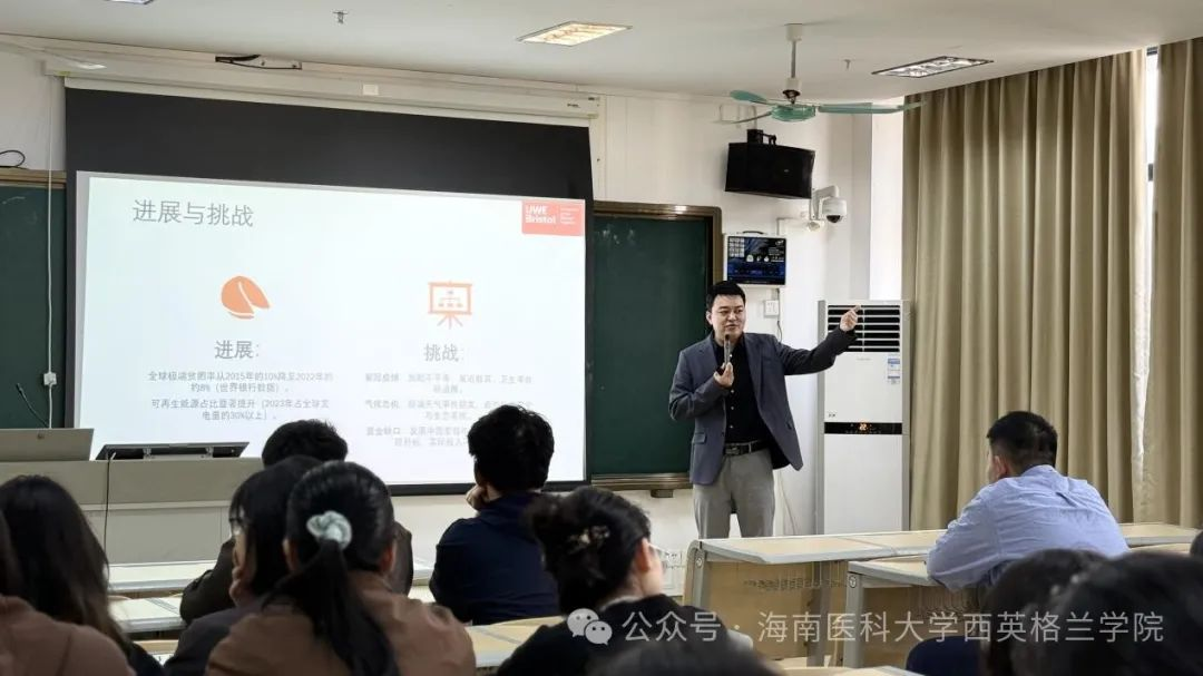 (Head of Lifelong Learning and Engagement - UWE Asia Pacific)Tom Linley 于3月3日在多功能报告厅举行了竞赛宣导会。Tom Linley 为同学们详细介绍了赛事规则,重点介绍了三级赛制:初赛鼓励自由组队申报创新方案、复赛引入企业导师辅导优化方案、决赛以全英文路演形式角逐最终奖项。他指出:赛制设计旨在形成“知识输入-实践验证-成果转化”的完整闭环。