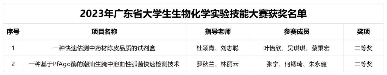 学生参与|在广东省本科高校师范生教学技能大赛和大学生生物化学实验技能大赛中获奖
