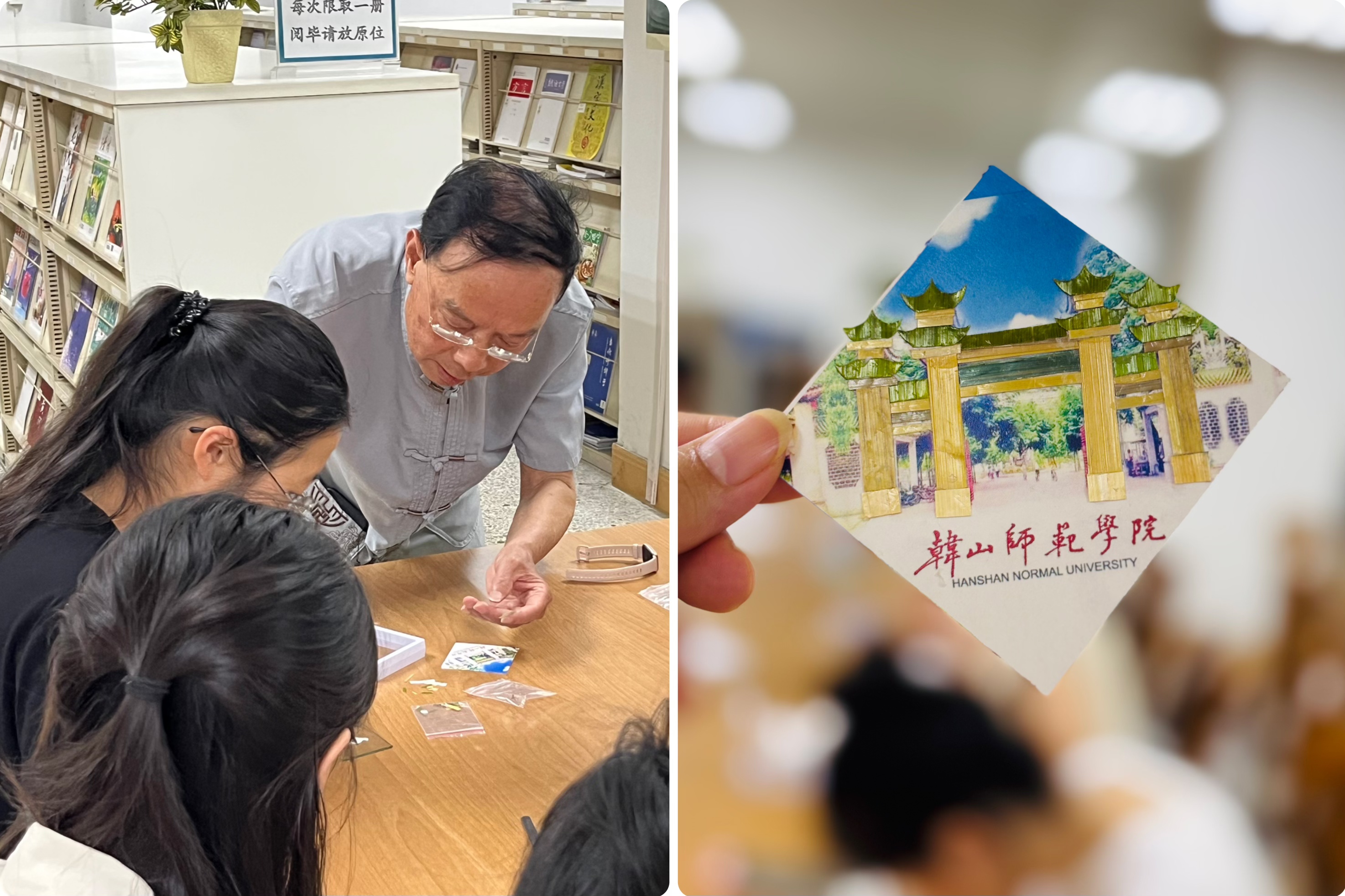 仪式后,“一麦相承·阅见非遗”——潮州麦秆剪贴画体验课在图书馆一楼报刊阅览室进行。潮州麦秆剪贴画是广东省省级非物质文化遗产,有独特的工艺和艺术价值,享誉中外。适逢第30个世界读书日,图书馆与潮州市潮州文化研究中心一起主办,邀请麦秆剪贴画省级代表性传承人李光荣先生来校开展麦秆剪贴画体验课,让韩园师生近距离感受非遗魅力。