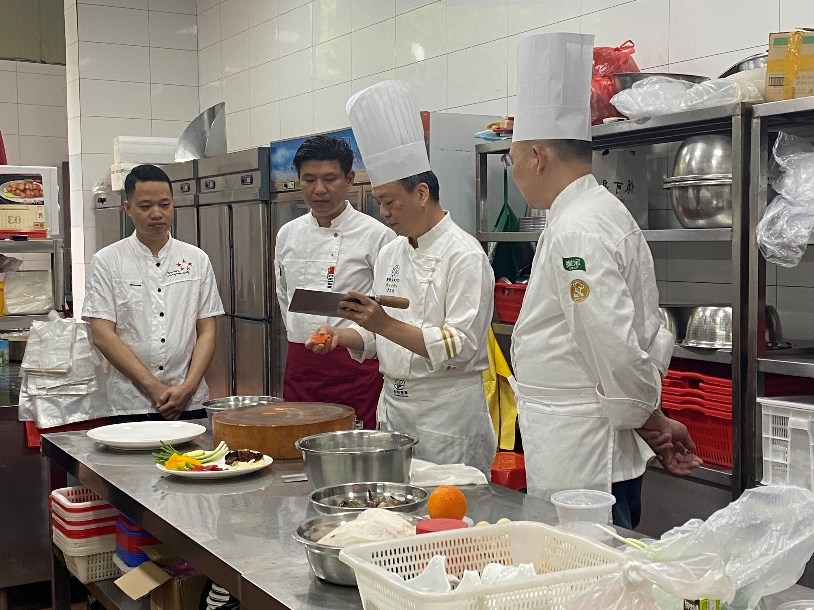 活动现场,孙文生以四代传承的潮州菜非遗技艺为例,亲自示范了"麦穗花鱿""返砂芋头"等经典菜品制作的全过程,讲解了各道菜品的制作工艺、细节要点以及个人实践感悟。他表示,传统烹饪技艺需要与时俱进、与现代创新融合,通过原料搭配、味型融合、装盘设计等多维度创新、精细化加工,让经典菜品重新焕发光彩。他提出,接下来将定期组织潮州厨师团队到访上砂镇,针对当地特色开发定制菜式;设立烹饪实训基地,通过"师带徒"模式为乡村振兴培养高素质人才。