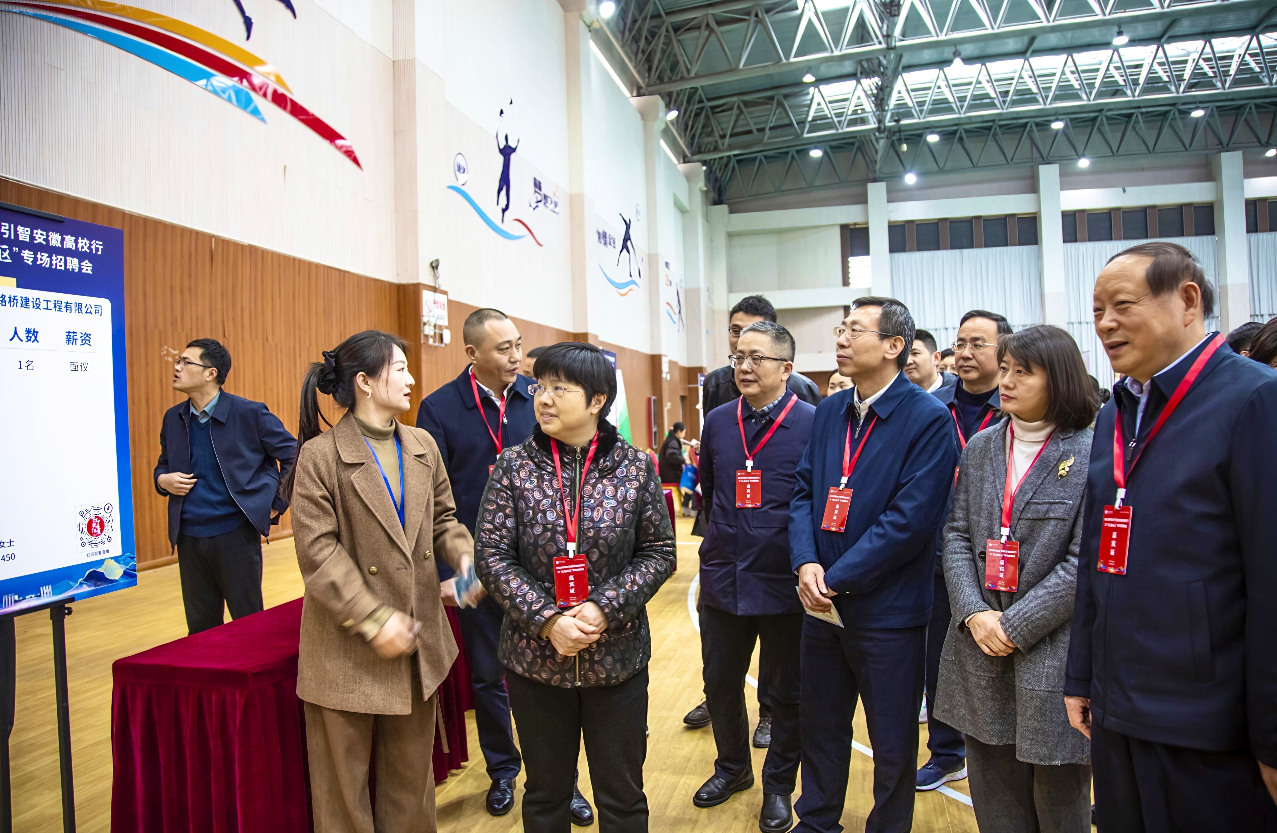 为落实省委、省政府人才兴皖工程,搭建皖南地区企事业用人单位和高校、毕业生供需对接平台,推动政、校、企同频共振、同向发力,更好促进高校毕业生高质量充分就业,3月30日,2025年招才引智安徽高校行之皖南地区专场招聘会启动仪式在我校文博楼二楼报告厅举行。省委教育工委副书记范奇,省人力资源和社会保障厅党组成员、副厅长陈宏,黄山市人民政府副市长江卓琪,我校党委书记李铁范,党委副书记、院长李庆宏,党委副书记章文静,黄山职业技术学院党委副书记、院长汪小飞,黄山健康职业学院院长张湘富出席启动仪式,皖南五市相关负责人,省教育厅、省人社厅以及皖南地区人才、人社、教育等部门负责同志,有关企事业单位负责同志、皖南和合肥等地区13所高校教师和学生代表参加大会。启动仪式由李庆宏主持。