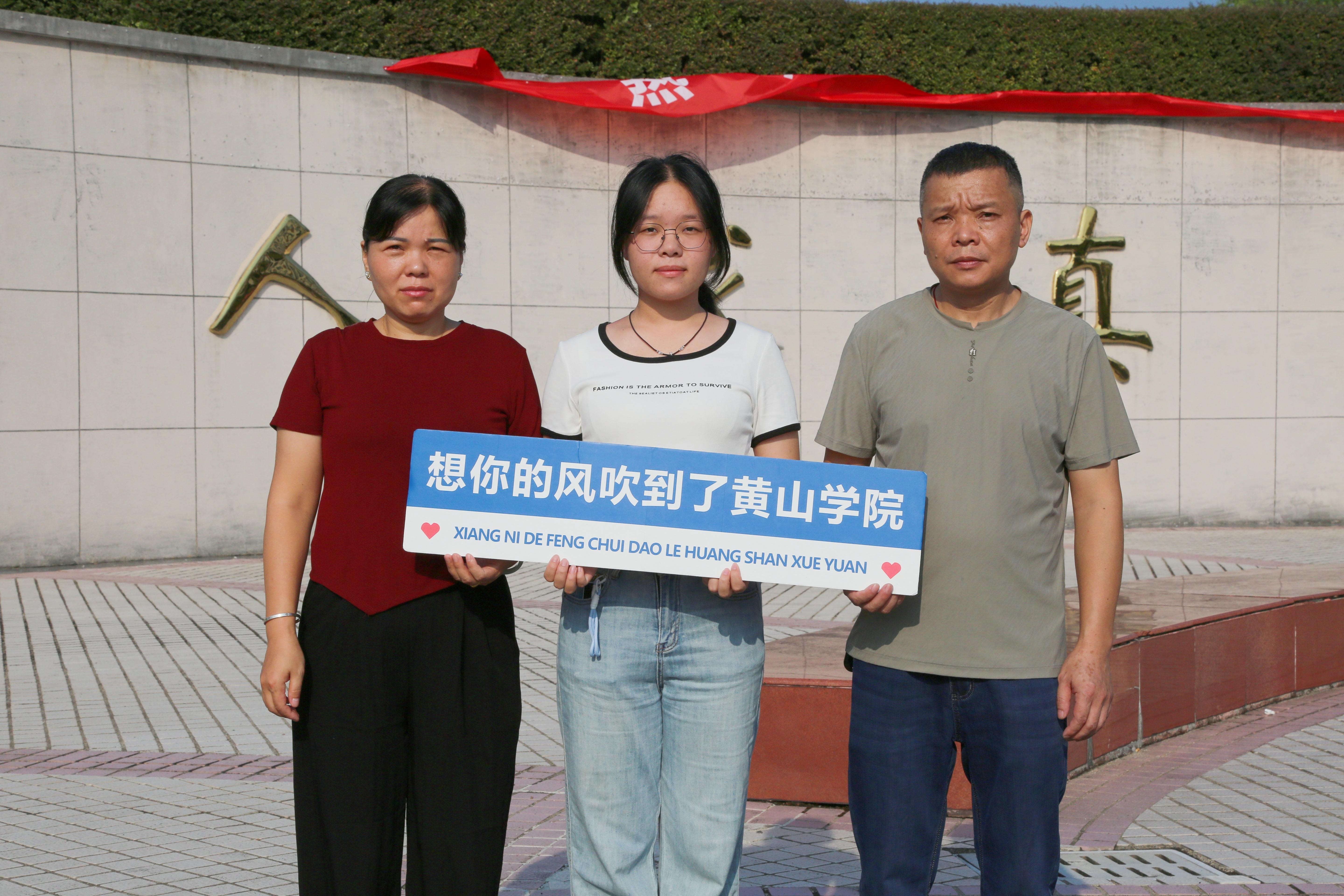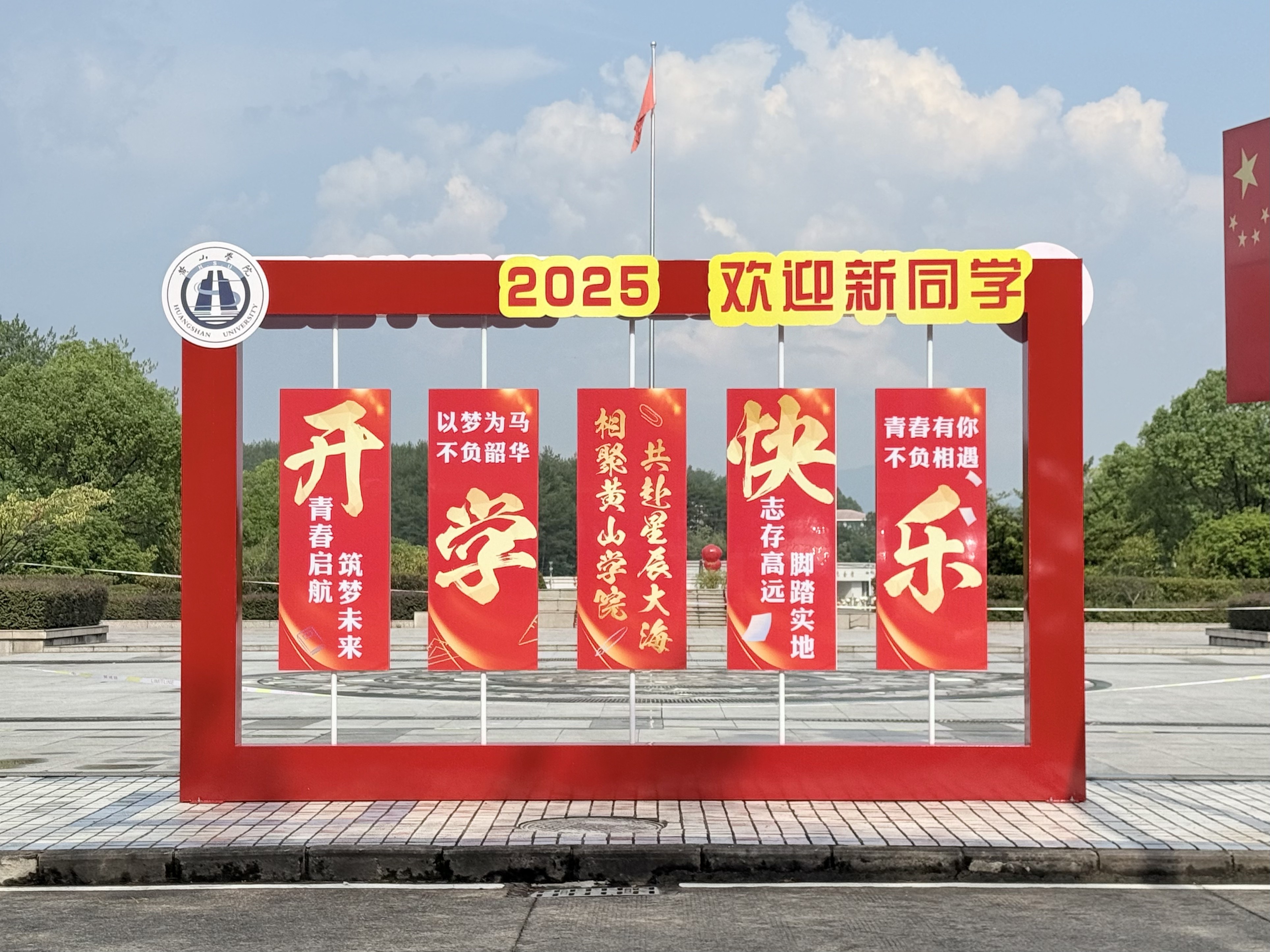 人头攒动的迎新现场,既有行李箱滚轮的轻响,也有师生间爽朗的笑声,热烈与温馨在校园里交织。“确认过,你就是黄山学院人”“今日萌新,明朝栋梁”……新生们手持印有俏皮标语的KT板,或与父母在打卡墙前依偎合影,或与刚认识的同学比出加油手势。“三、二、一,茄子!” 融媒体中心的大学生记者们举着相机、手机穿梭其间,定格下这些充满朝气的瞬间,镜头里的笑脸与道谢声交织,成为迎新现场最动人的旋律。