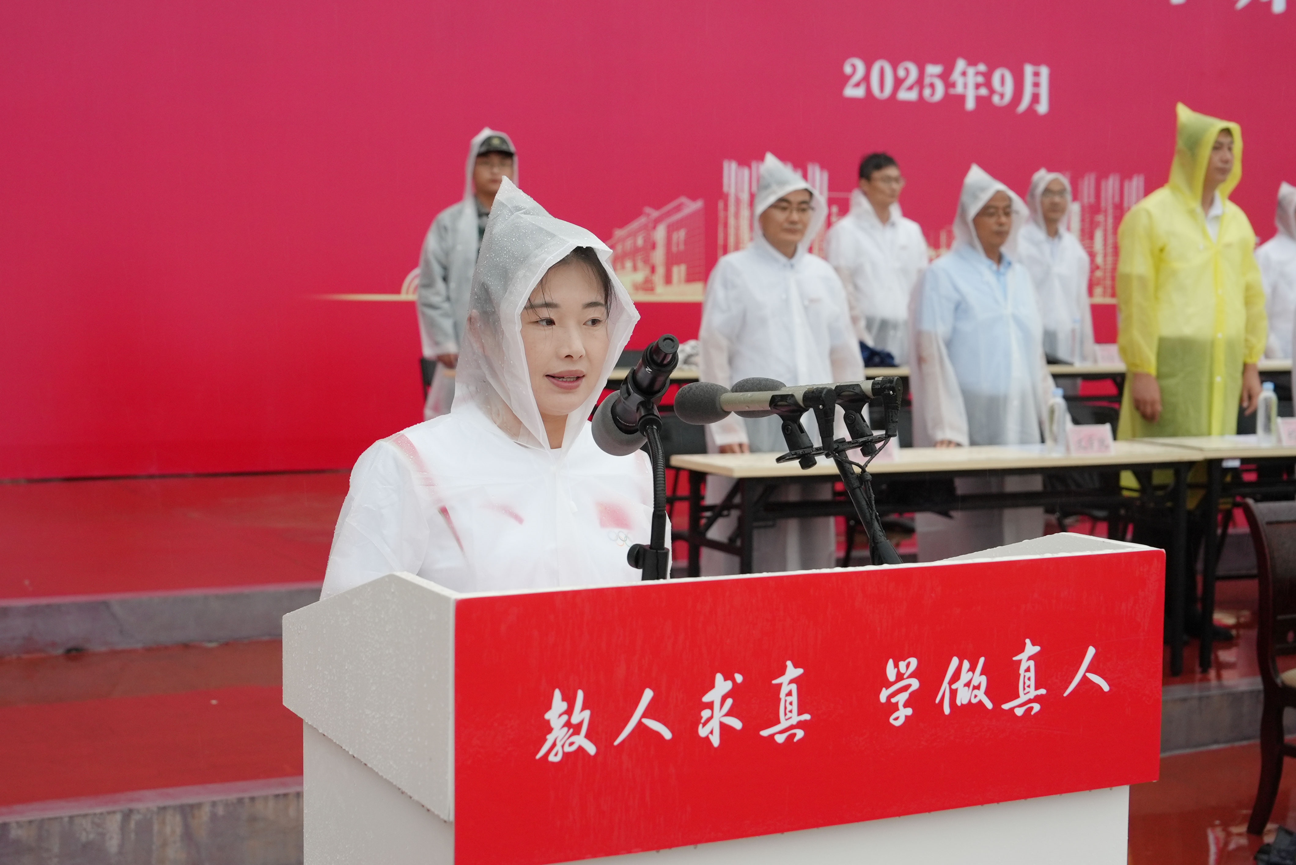 典礼上,校党委副书记、院长李庆宏向承训部队授军训团团旗。雨水浸润的旗帜愈加鲜红,仿佛昭示着新生们将在磨砺中绽放的青春底色。