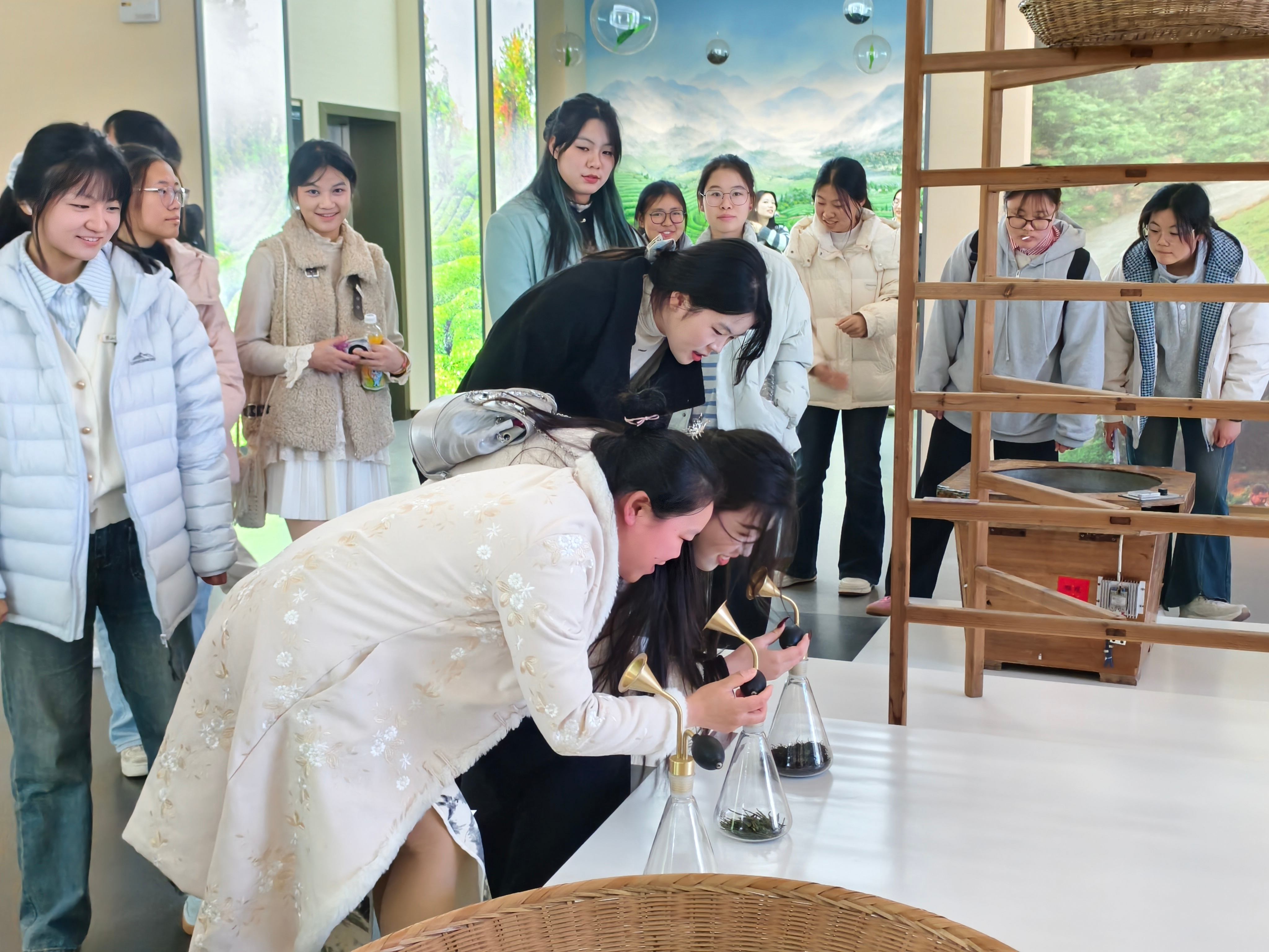 走进黄山市非物质文化遗产馆,同学们瞬间被浓郁的徽州文化氛围包围。馆内通过“科技+文化”的创新展陈方式,生动展示了包括徽州民居营造技艺、徽剧、徽州竹编、徽菜制作技艺在内的多项国家级和省级非物质文化遗产。大家在互动体验区积极参与非遗技艺实操,在亲手实践中深化对徽州文化的理解与认同。