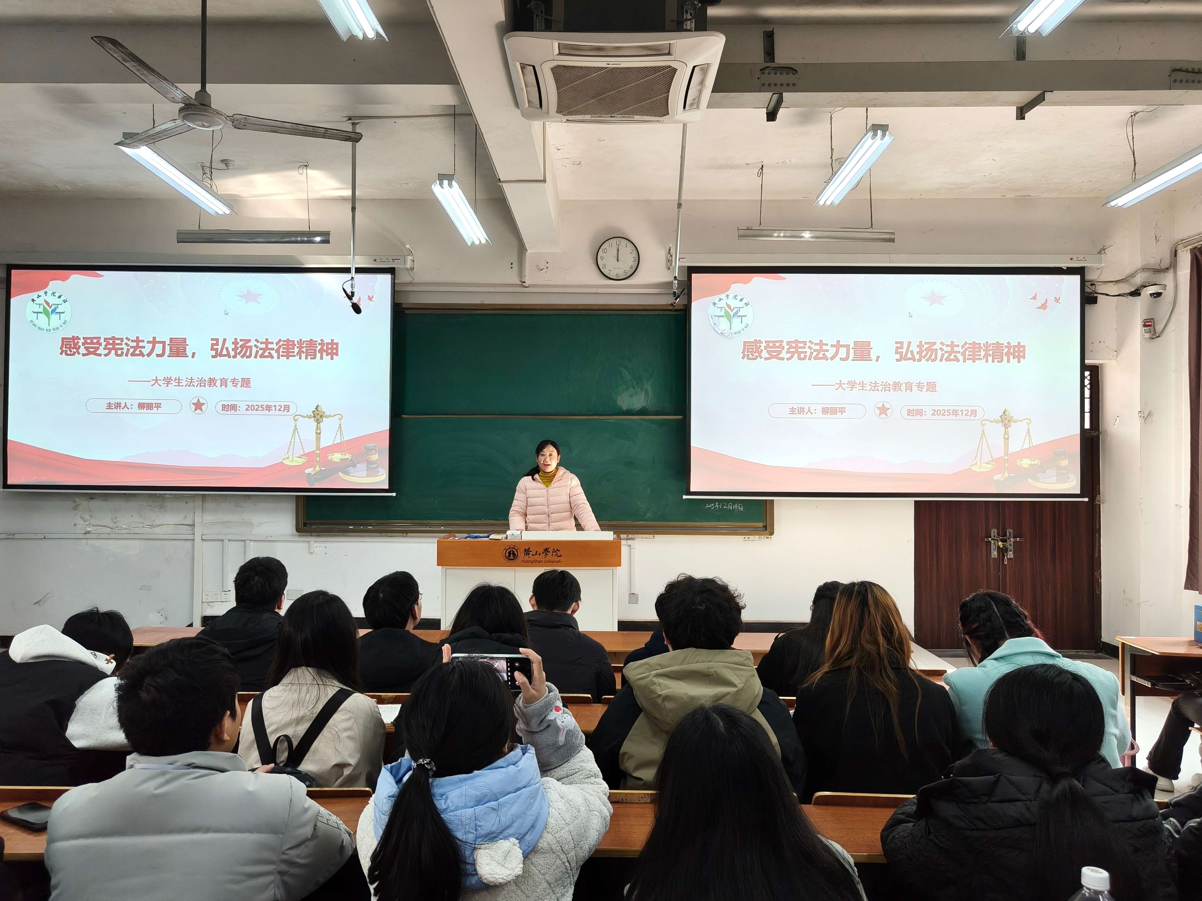 12月17日,“感受宪法力量,弘扬宪法精神”专题学习报告会在文渊楼1205举行。师生共同观看一段宪法主题学习视频后,柳丽平老师结合案例,对宪法内容进行了解读,系统阐述宪法作为国家根本大法的重要地位与核心作用,引领师生深刻领悟宪法精神的实质内涵。
