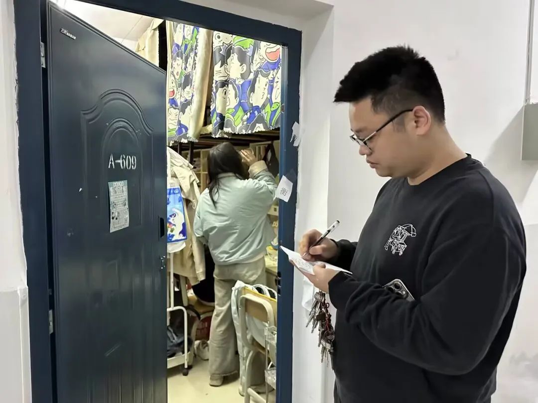 在检查过程中,董俊要求每位辅导员老师严格按照学生名单逐一核实在寝信息,确保“一人一核实、一寝一清点”,对未按时归寝的学生第一时间联系确认去向,并做好记录与后续跟踪。同时,她指出,针对宿舍内违规电器、私拉电线等安全隐患进行细致排查,提醒学生严格遵守宿舍管理规定,强化安全防范意识。此外,各宿舍卫生状况也被纳入重点督查范围,引导同学们养成健康整洁的生活习惯。走访中,辅导员们主动询问学生近期学习生活情况,倾听学生诉求,针对学业压力、人际关系等常见问题给予建议,并叮嘱学生注意春季传染病预防,合理安排作息时间。同学们积极配合检查,认真听取意见,展现出良好的精神风貌与纪律意识。