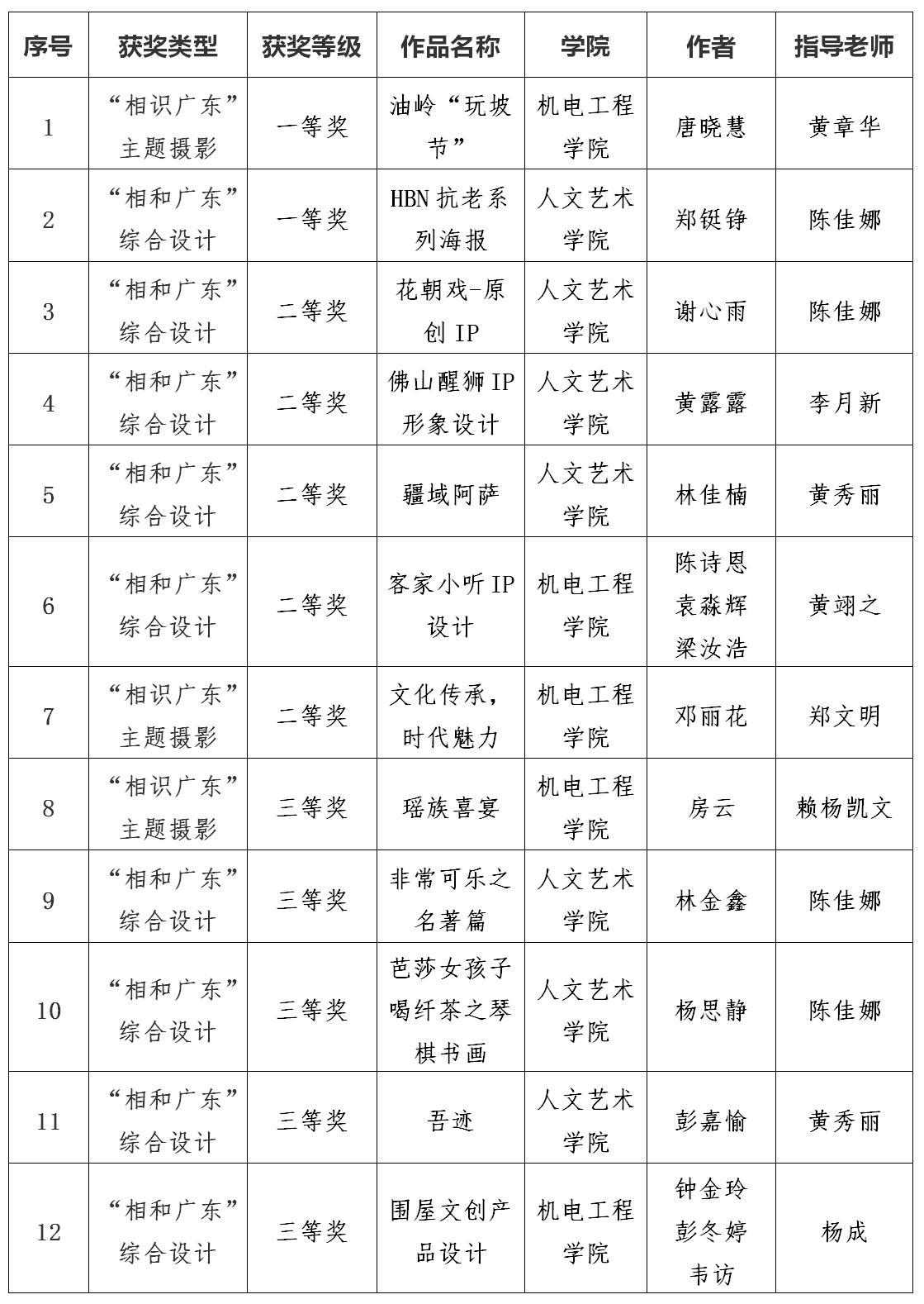 近日,由广东省教育厅主办的“爱在广东”民族团结进步教育活动评选结果公布,该活动包括“相遇广东”主题演讲、“相识广东”主题摄影、“相融广东”微视频、“相和广东”综合设计等4个项目,旨在促进各民族学生广泛交往交流交融,构建起各民族学生维护国家统一和民族团结的坚固思想长城。我校获得一等奖2项、二等奖5项、三等奖5项,共计12项奖项,获奖总数在全省高职院校中排名第二,取得历年来最好成绩。具体获奖名单如下: