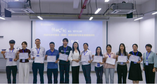 4月22日,由河源市文化广电旅游体育局指导、河源职业技术学院承办的“‘扬帆计划’助力‘百千万工程’——河源市乡村酒店(民宿)服务技能与安全管理培训班”在河源市中小学生综合实践基地开班。我校袁光华副校长、河源市文化广电旅游体育局李君副局长等领导出席开班仪式,50 余名乡村酒店(民宿)相关领域的行业精英参加培训。