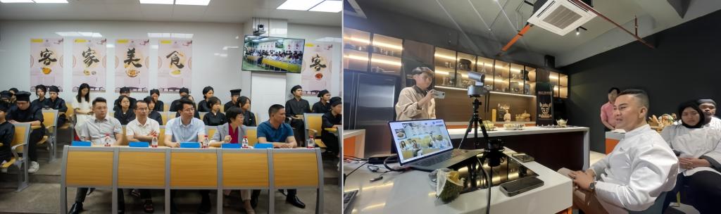 5月13日,我校在学术交流中心烹饪综合实训室成功举办中马美食文化交流会暨“中文 + 客家菜点职业技能”培训活动。马来西亚富才国际学院(以下简称“富才学院”)校长扎姆扎尼、合作部部长马菲兹、教务主任艾娜、教育顾问伊萨及餐饮专业学生代表出席了活动。我校副校长袁光华出席活动并发表致辞。此外,我校党政办主任汤剑冰、工商管理学院院长张颖以及烹饪工艺与营养专业相关师生,共计近百人参与了活动。