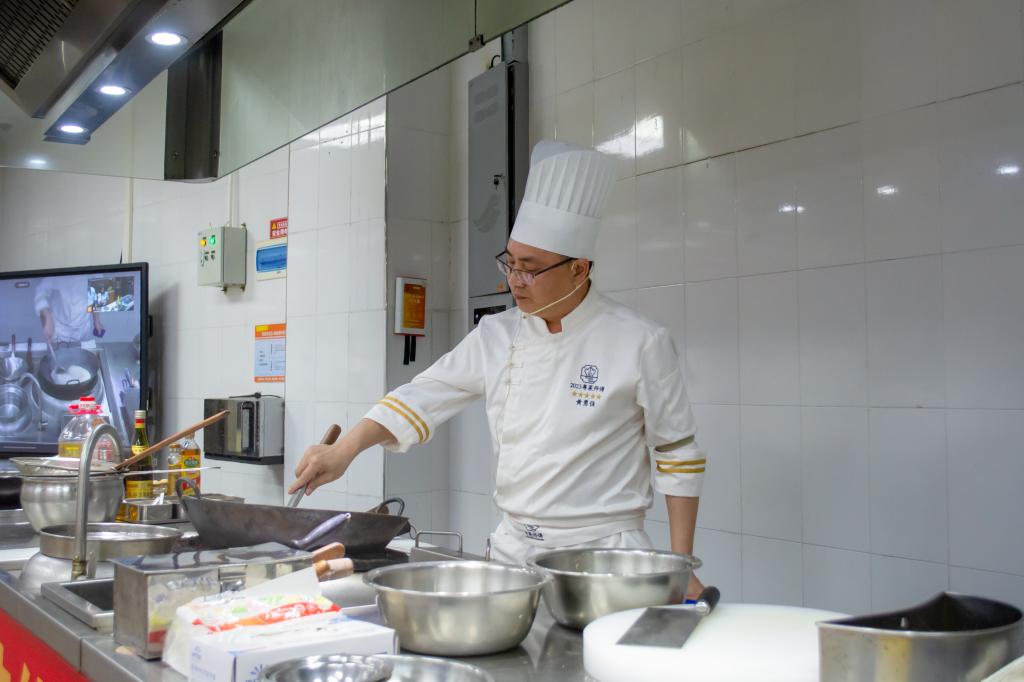 紧接着,我校师生们展示了客家菜的精湛技艺。客家菜烹饪技艺传承人黄勇强老师率先登场,他凭借深厚的烹饪功底,现场演示了客家盐焗虾的制作全过程。在制作过程中,黄老师严格把控每一个环节,注重火候与调料的精准搭配,充分保留了虾的原汁原味,这不仅体现了他高超的烹饪技艺,更彰显了客家菜对食材本味的极致追求。