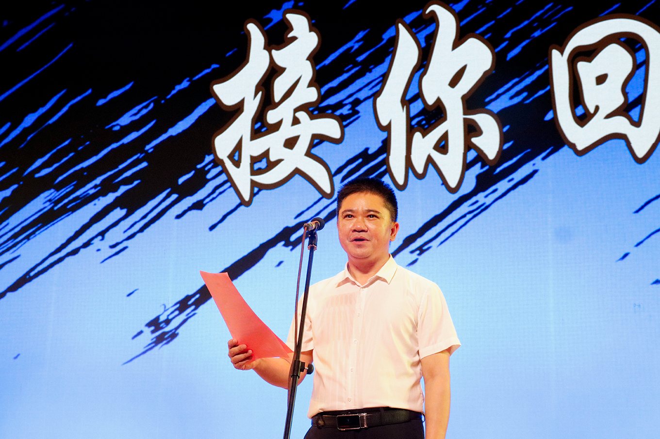 演出开始前,袁光华副校长代表学校致欢迎辞。他向紫金县文化广电旅游体育局、花朝戏传承发展中心的各位嘉宾及艺术家们表示热烈欢迎,并对紫金县委、县政府及社会各界同仁对本次活动的支持表示衷心感谢。袁光华副校长在致辞中表示,紫金花朝戏是国家级非物质文化遗产,蕴含着深厚的文化底蕴和客家人民的智慧。本次上演的剧目《接你回家》以大历史时期为背景,生动讲述了张民强、霞妹等人物的故事,展现了他们为国家民族追求理想、勇于献身的崇高精神。剧中“接你回家”的深情呼唤,不仅是对亲人的思念,更是对理想信念的执着坚守。演员们精湛的表演和感人的剧情,深深打动了现场观众。