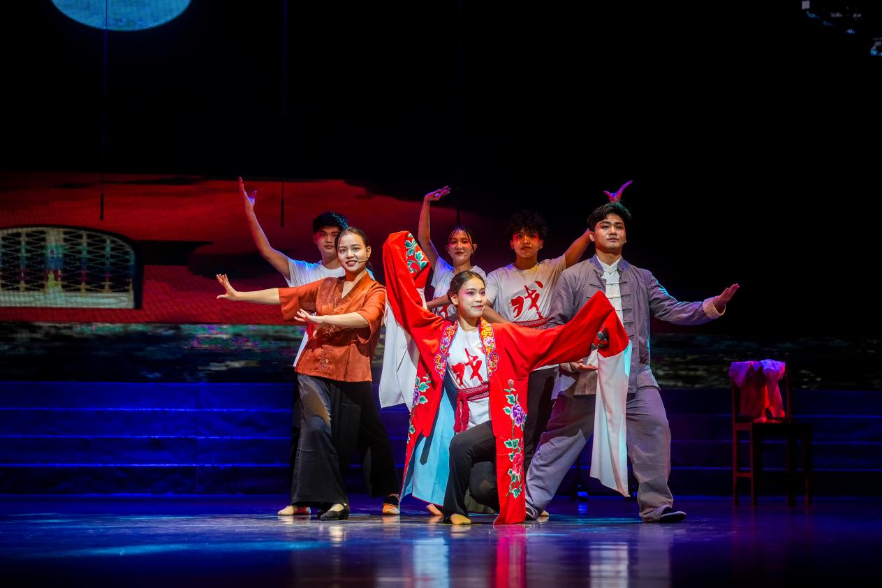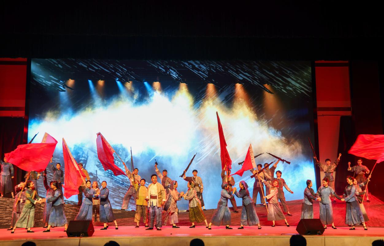 (在校生与现就职于紫金县花朝戏传承发展中心的毕业生及剧团演员同台献演大型现代花朝戏《接你回家》)