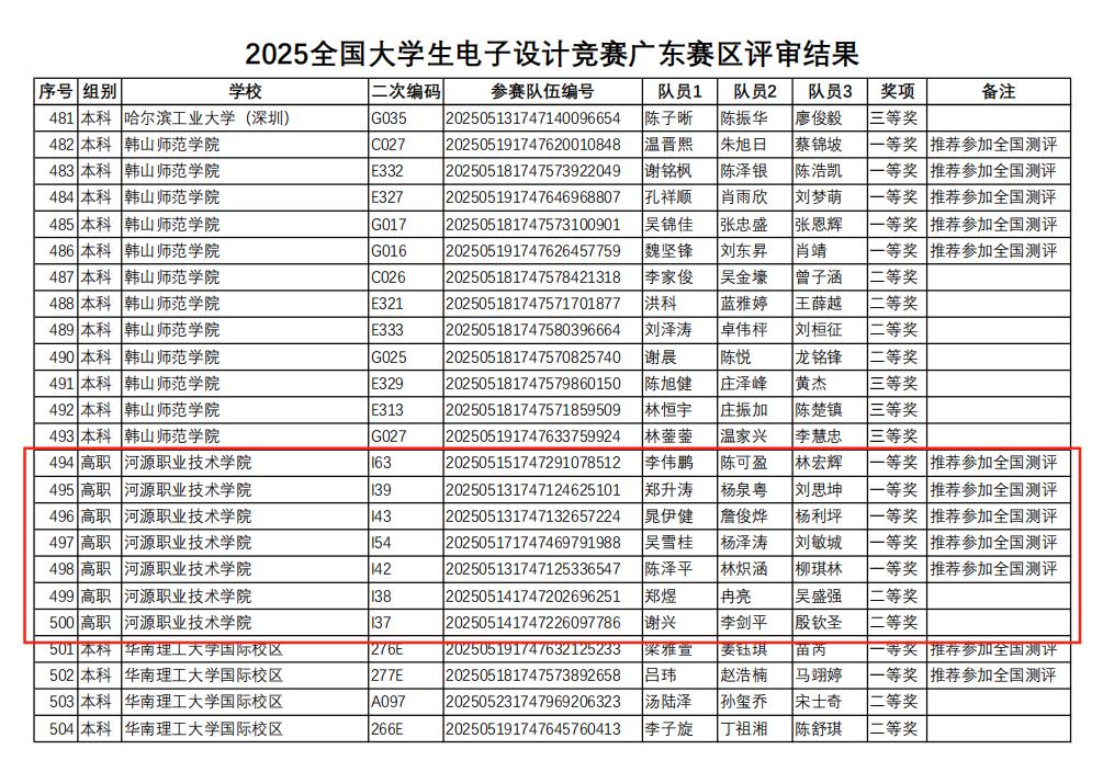 近日,从2025年全国大学生电子设计竞赛广东省赛区传来捷报,我校学生在此次竞赛中表现卓越,共荣获广东省一等奖5项、二等奖2项。其中,获得一等奖的5支队伍将代表广东省参加全国总决赛,与来自全国各地的顶尖团队展开激烈角逐。全省高职组别共有10个学校进入全国总决赛,我校进入国赛的队伍数排名第2。