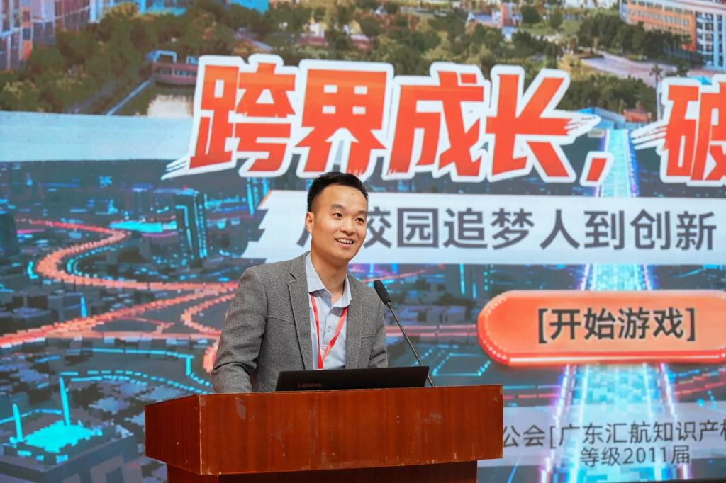 2011届应用电子技术专业校友、广东汇航知识产权运营有限公司创始人何火金,以“跨界成长,破界前行”为主题,分享了从一线技术员到创业成功者的“五关闯关”经历,建议学弟学妹打造“T型天赋树”,兼顾专业深度与跨界宽度。