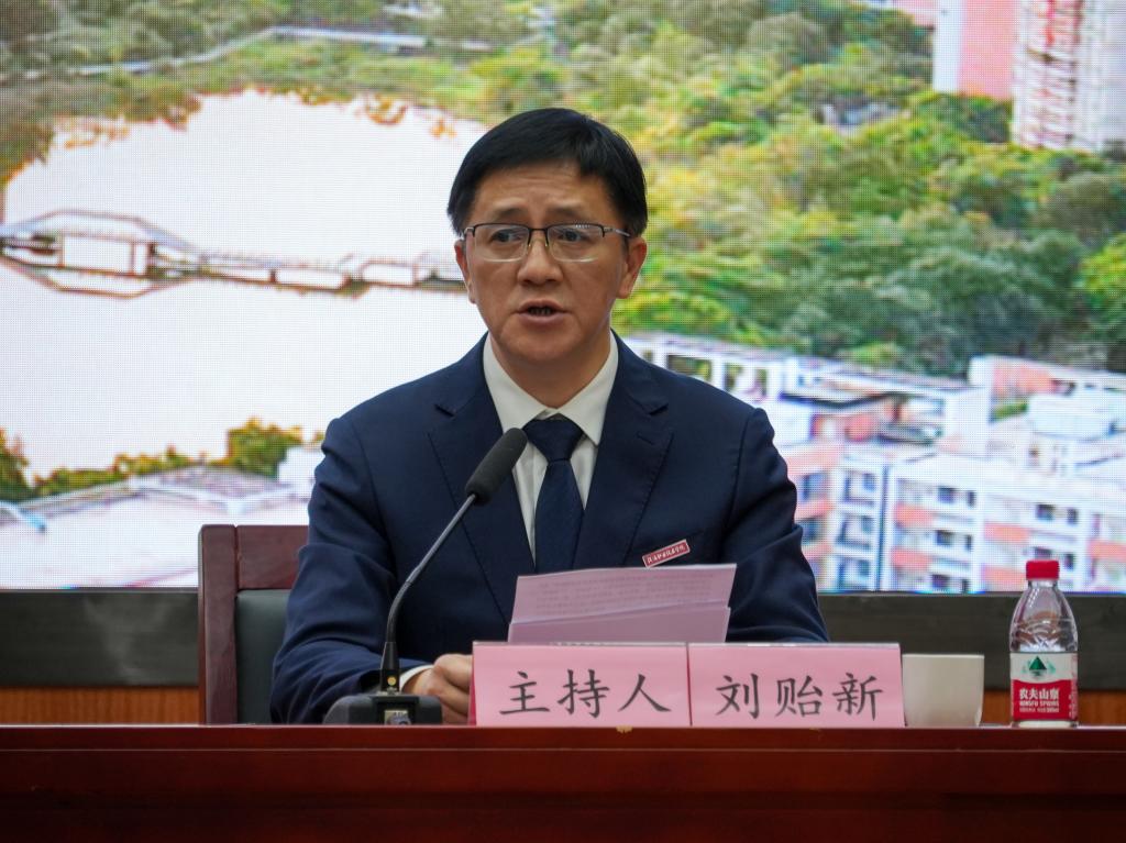 下午14时30分,高质量发展大会在学术交流中心报告厅举行,刘贻新校长主持。