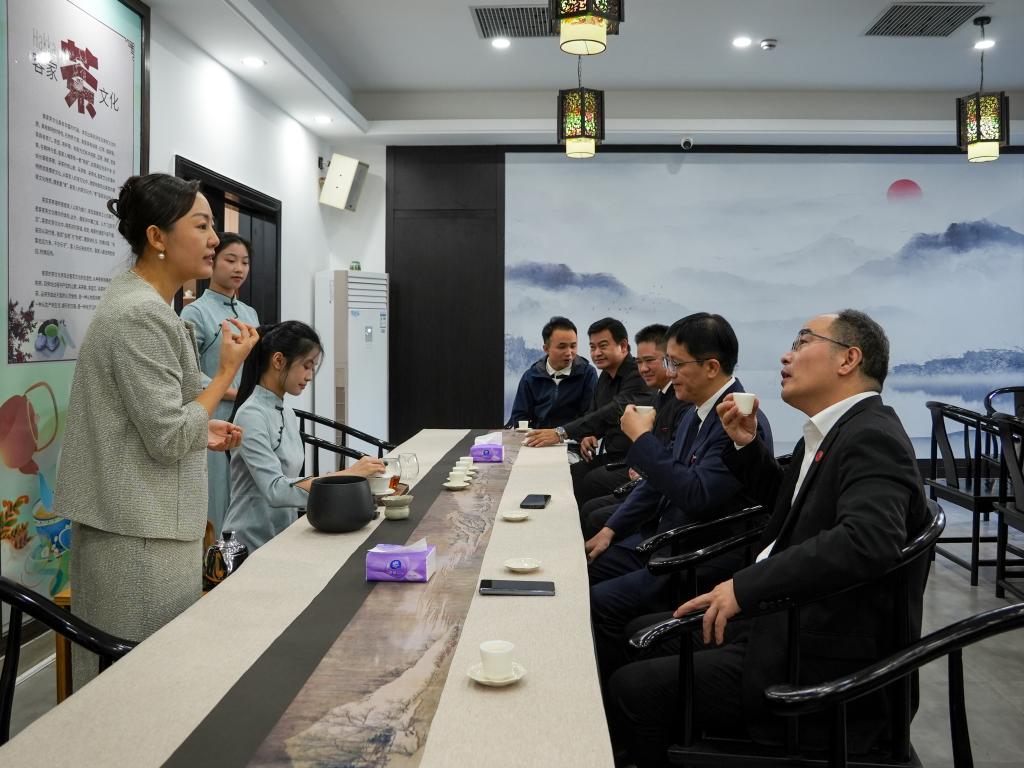 会后,刘贻新校长陪同许建领校长参观了学校茶艺室与校史馆。