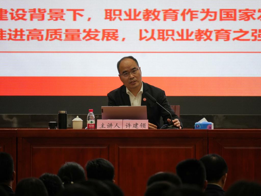 深圳职业技术大学校长许建领以“新时代职业教育的发展与实践”为题授课,围绕职业教育在教育强国、制造强国建设中的定位与使命展开深入探讨。他指出,职业教育已迎来历史性发展机遇,职业本科教育的突破打破了传统认知偏见,高就业率彰显了其实用价值与社会认可度。许建领校长分享了深职大“双高计划”建设经验,强调职业教育需强化专业群建设、深化产教融合、提升国际影响力,为区域产业发展提供精准人才支撑。