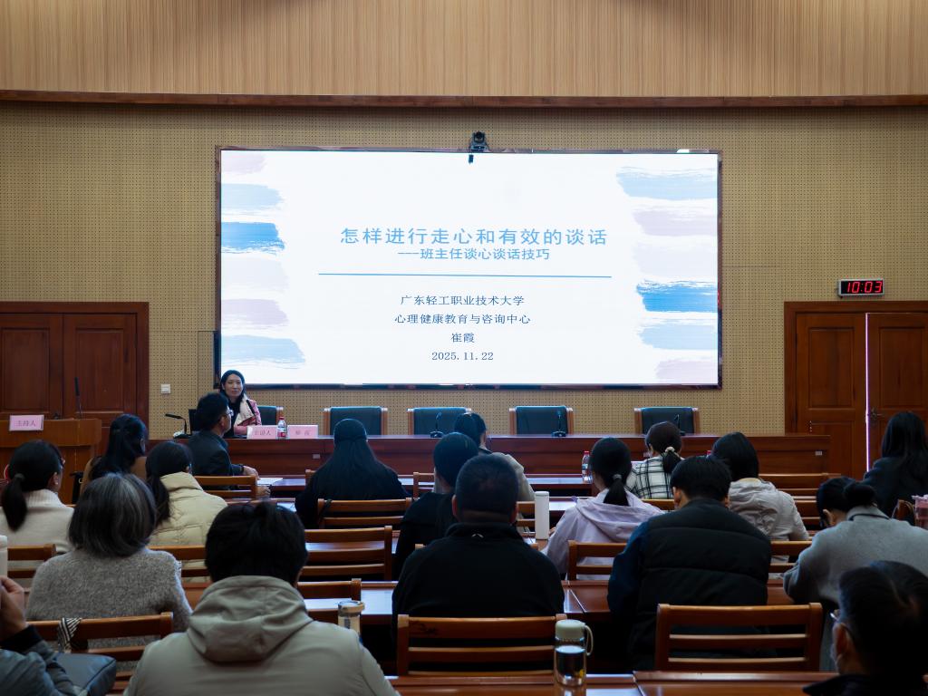 我校袁光华副校长主持专家讲座,组织人事处组织相关教师参与培训,讲座专家由深职大教务处邀请,特邀李柏青教授(原佛山职业技术学院副校长,现任广州南洋理工职业学院常务副校长,广东省第一届职业教育教学名师、南粤优秀教师)带来《职业院校青年教师成长路径探析》专题讲座,崔霞副教授(广东轻工职业技术大学心理中心教研室主任,从事特殊人群与大学生心理健康教育工作15年,2023年全国职业院校教学能力大赛一等奖获得者)主讲《班主任谈心谈话技巧》。