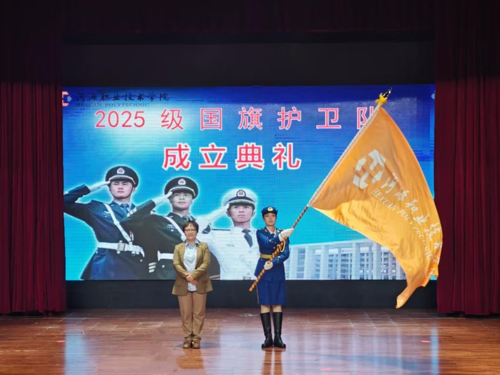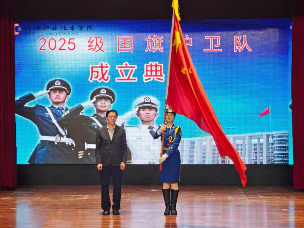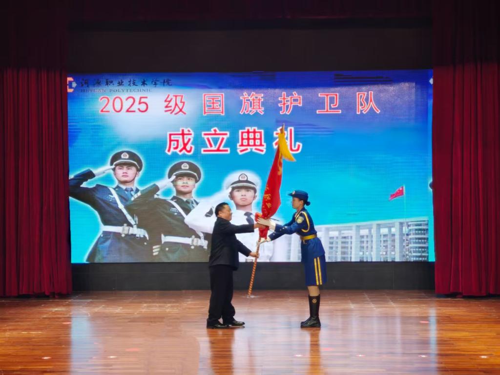 12月8日下午,我校在艺术楼演播厅隆重举行河源职业技术学院2025级国旗护卫队成立典礼。校长刘贻新、副校长姚家芳及各职能部门负责人出席典礼,师生代表共同见证了这一庄严时刻。学工处处长廖远来主持典礼。
