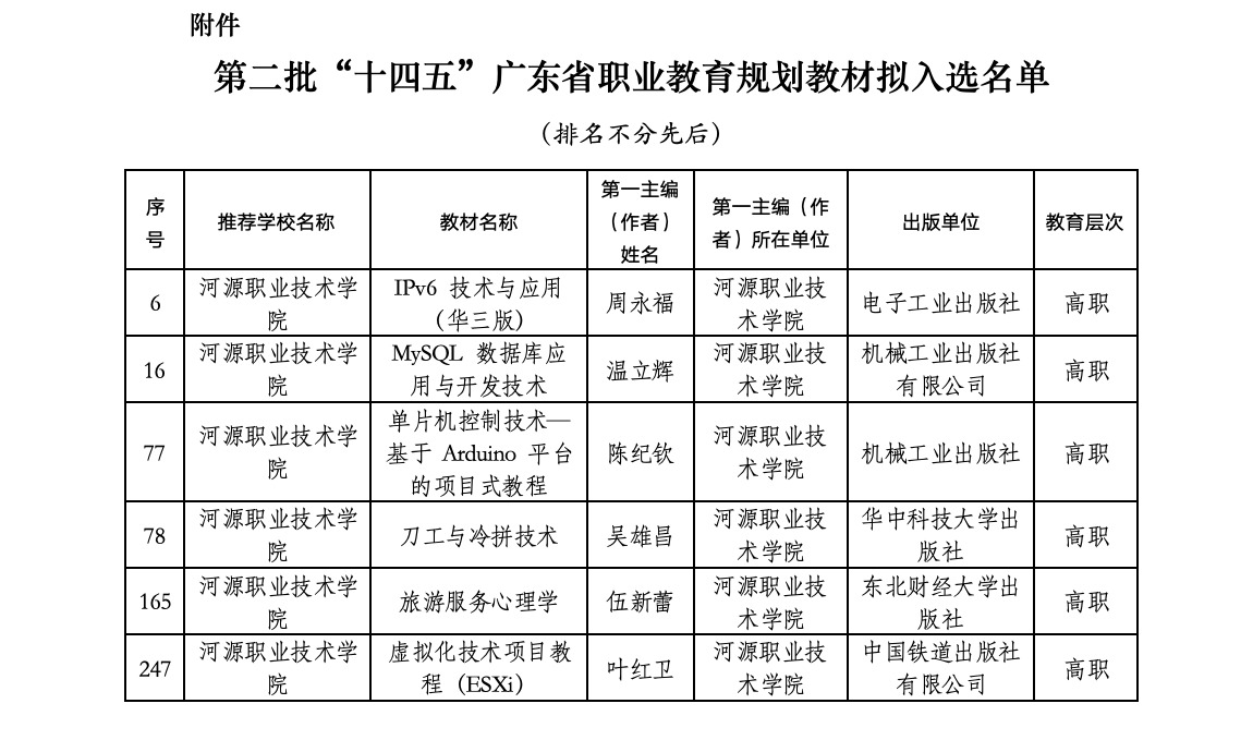 喜报!我校六部教材入选第二批“十四五”广东省职业教育规划教材